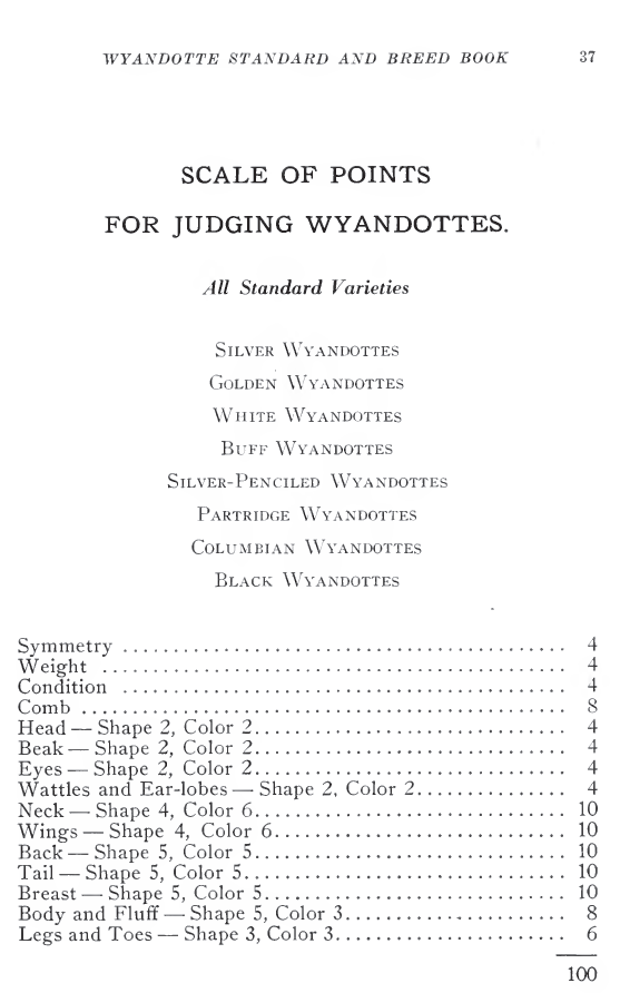 here is a scale of points of wyandottes, as you can see all the body parts are the main portion of points, and most important. things like wattles eyes and beak being less points: