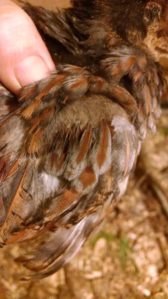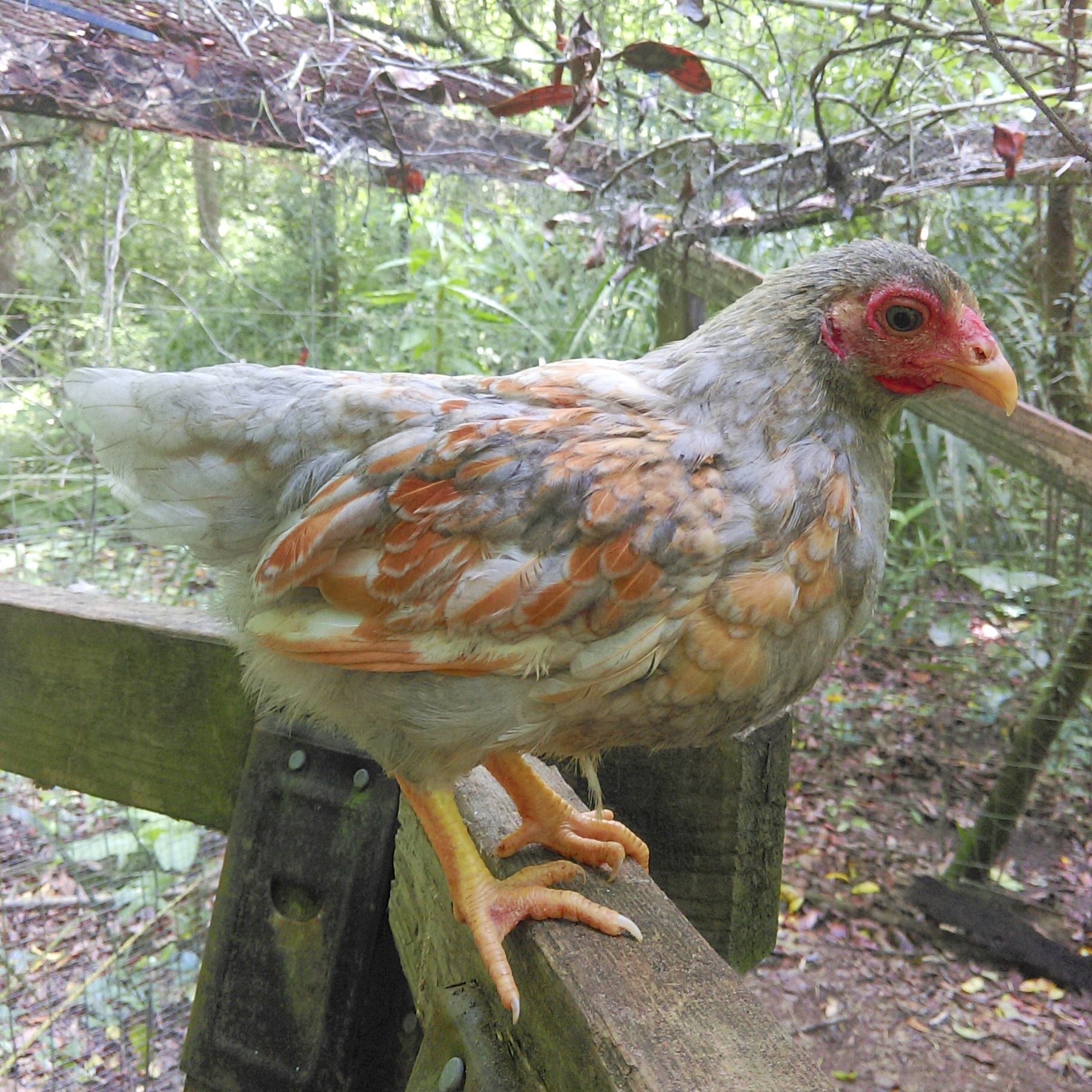 I'm sorry about the loss of your chicks! I have never had an older bird kill any of my chicks.Cockerel Came home Sunday evening to my sons d'uccle hen killing some of my chicks. She got my last 2 pure Foley chicks I had left before pred had killed my cockerel and nearly killed another blue and 4 CCL and Rhodebars. She ate off the tale of the black one and attempted the same with the others. I was going to cull her but son talked me into sending her to the farm to live with Kathy(His bosses mother) so I let him. At least I have 2 blue chicks to grow out yet and they are just starting to get in their dark color and will have a nice blue contrast it's looking like.Photo is not the best but you can see the dark red coming in. I have faith in these last 2 chicks as they are all I have left. I do have 2 cockerels I bought back that I hatched out last year from previous birds but have brass. One of which has really nice dotte type so I'm going to breed them in hopes for a few nice chicks.crossing fingers.