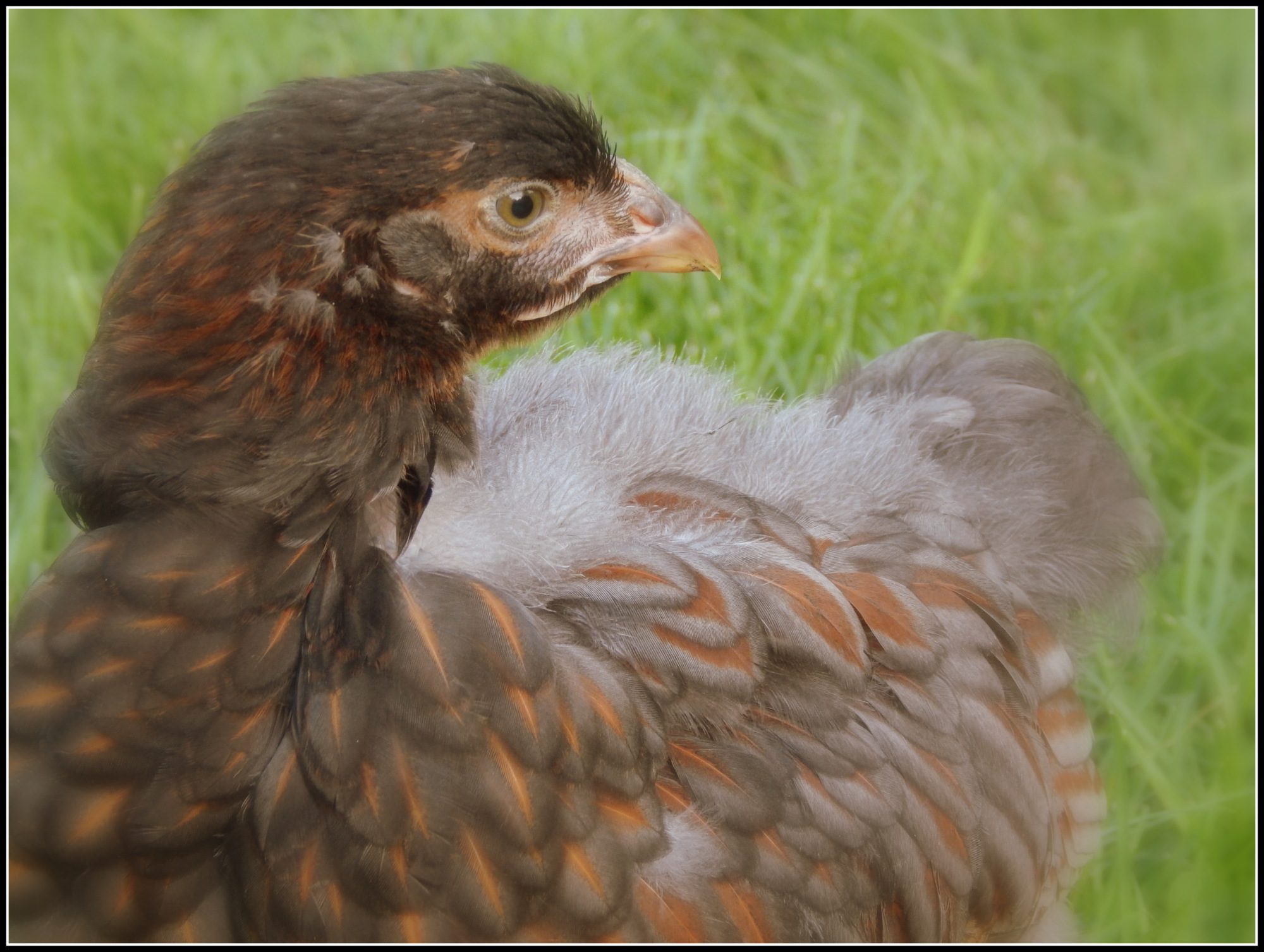 My BLR turned 8 weeks old today. As I was lifting the chicks into the coop tonight, I was surprised at how much heavier she is then the other breeds the same age. She is at least double in weight. (She is double the cute factor too)