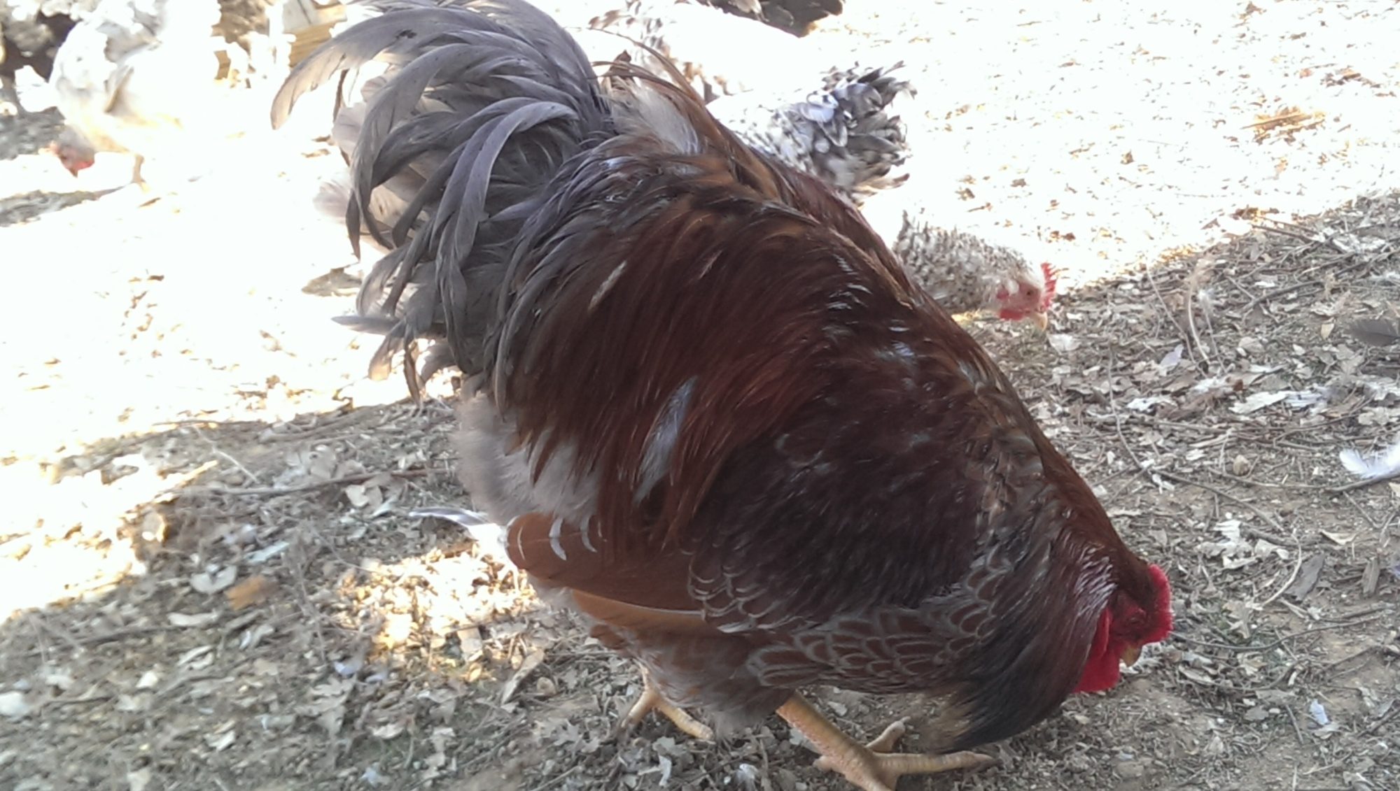 This is supposed to be the father of the roo i posted. He is dark blue and what I REALLY want. I guess I just need to buy a cockerel that is for sure blue and stop messing around with the chicks...I dont think mine will ever turn this dark...they say after the molt they can change some but not to be like this.