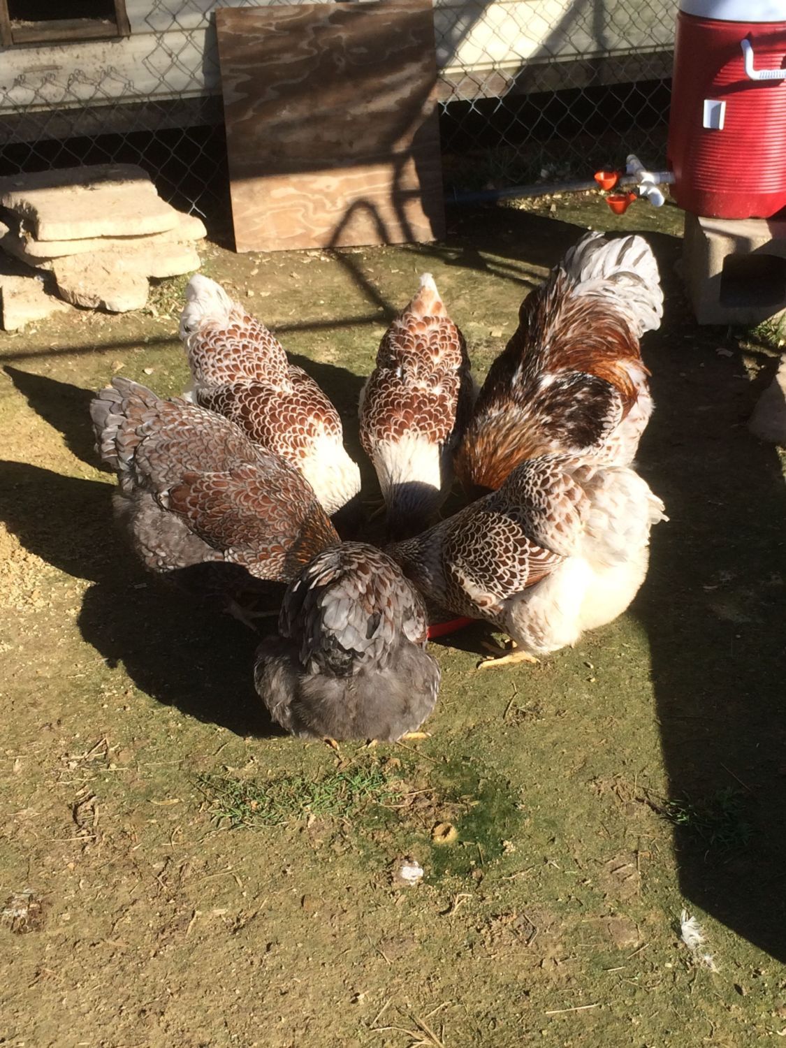 The breeder I got them from says that they don't throw blacks, so I'm guessing what she is breeding are the splash on splash. She recommended that I put him over a black pullet to get more blues. They are hard to find in this area. I need to get my hands on a nice black pullet if you know where I could find some. Or if you know anyone that sells hatching eggs.He looks pretty good to me (but I'm not breeding show birds either). I just got a nice splash rooster too. Hopefully you will get a few black pullets and then your chicks will be 100% blue.