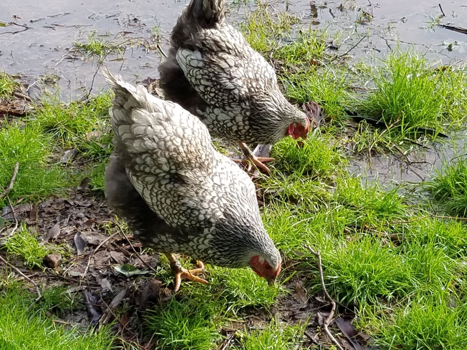 They are Blue Laced Silver Wyandottes. Sorry for the mislabeling...I have the results of 4th generation on the ground now and I am getting almost 50/50 blue and splash with an occasional darker one that I think must be the "black". Here they are around 5-6 wks. I will post as they feather out. PS: I am also releasing eggs in small quantity this year for this project color. Currently they are listed on Ebay, until my incubators and pens are all cleaned and ready for spring hatches, then chicks and juveniles will be also available.