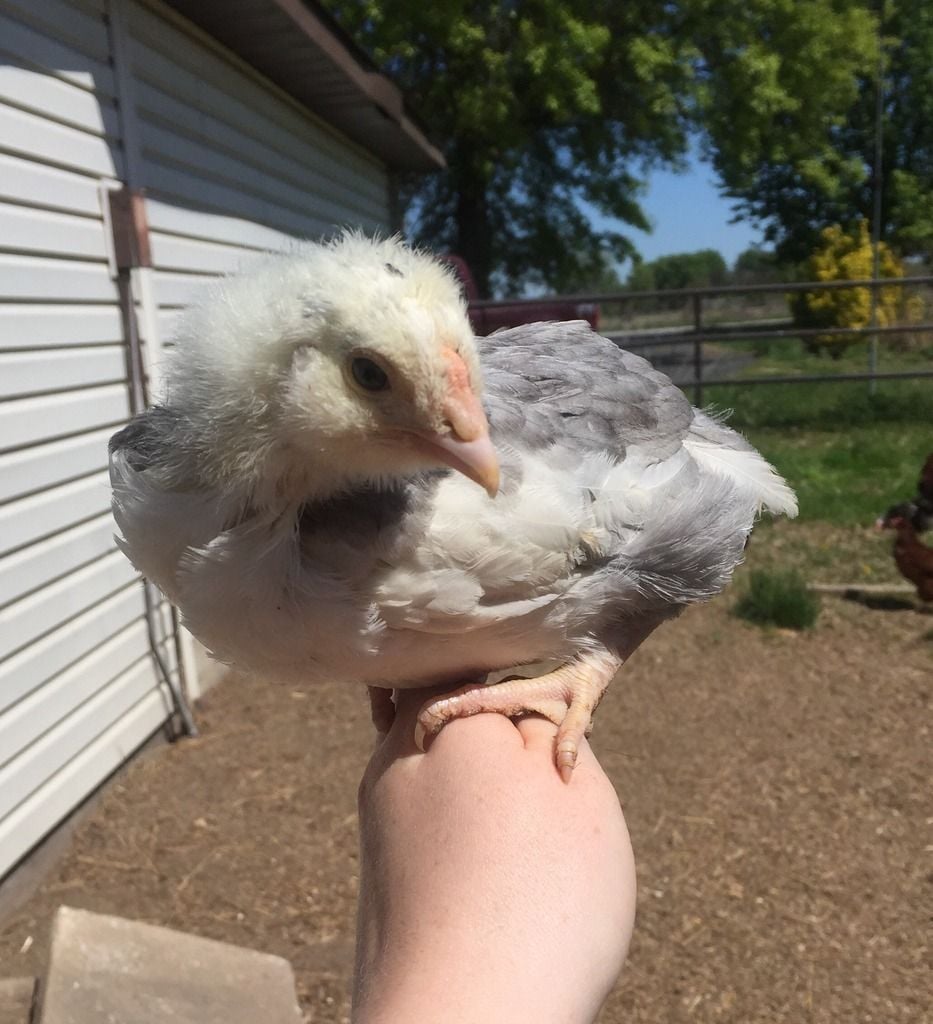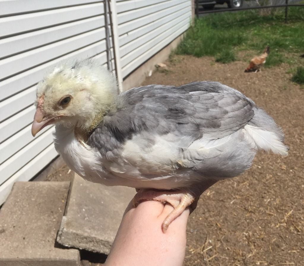 So I went to pick up a wheaten Ameraucana rooster today and of course came home with a couple of extras! I spotted a little roo with a blue back and white chest, breeder thought it must be blue mottled. He only has blue/black, blue/wheaten, and black mottled, with the occasional blue mottled popping up. I noticed the little guy also has rather orange lets, which I presume is because the mottled is a project color?
