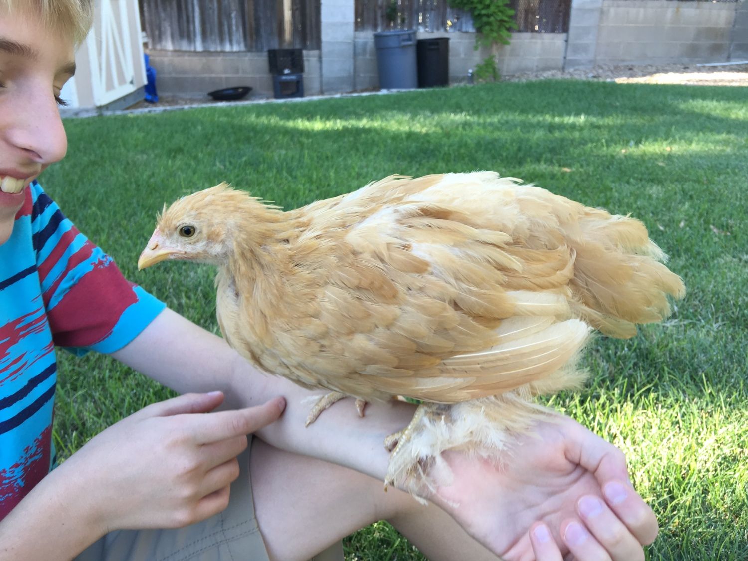 We got 4 new "girls" the end of May. This one I'm not so sure about. First of all we thought that they (this one and one other) were to be standard Cochins. I'm thinking now that they must be bantams because the other two girls, one EE and one Brahma are much bigger. No biggie if they are. Anyway, what do you think? We are 7 weeks old and are getting little wattles, more so than the other Cochin. Never having had a Cochin, I'm not sure if this is normal?