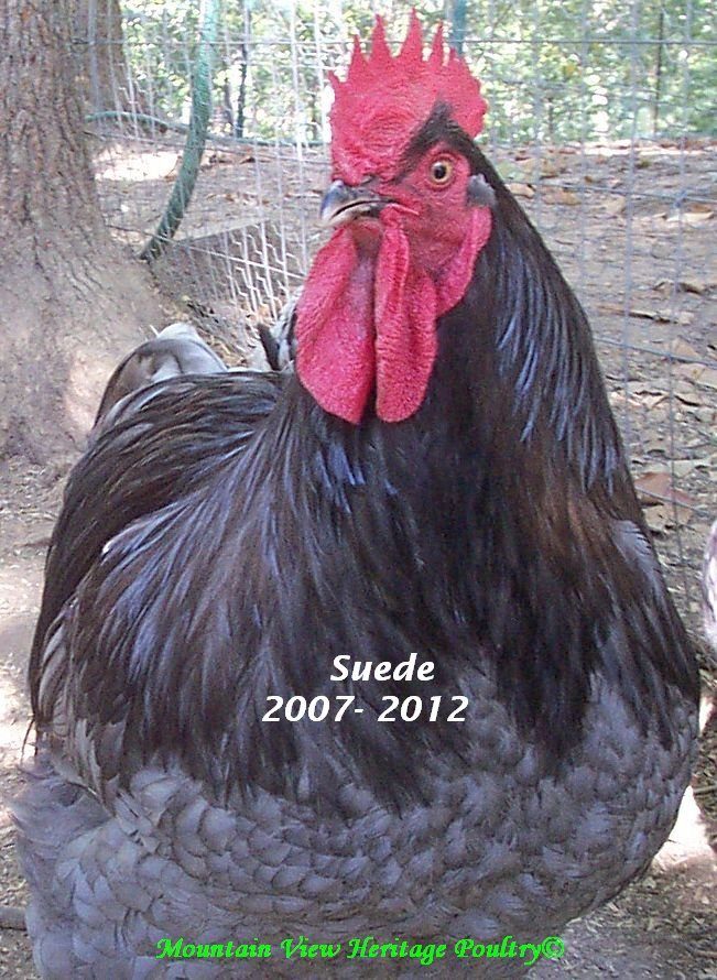 Suede, who most BYC folks know well, and who my business with a friend is named after (that and her Blue Orp rooster), Blue Roo Creations. Got him and his hen, Velvet (also deceased, crop issues during hard molt) from Bama Chicken, Julie Batchelor in Alabama:
