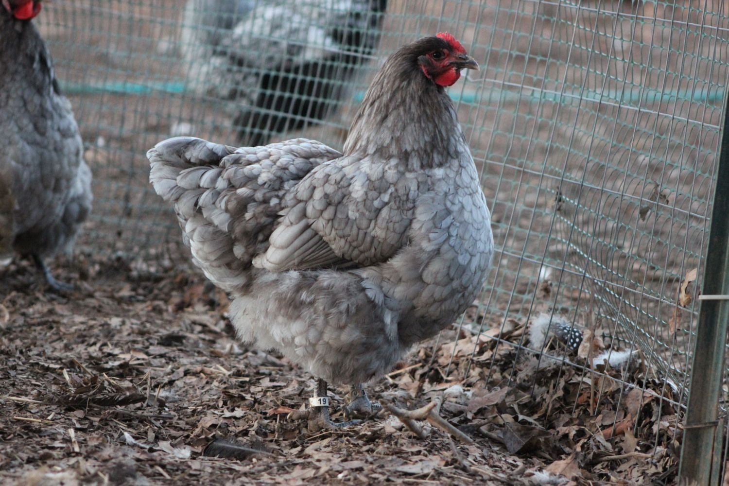 Does anyone have offspring of a Buff Orpington crossed with a white leghorn who shows silvery blue in some of his feathers, such as hackles, tail, and wing tips?
