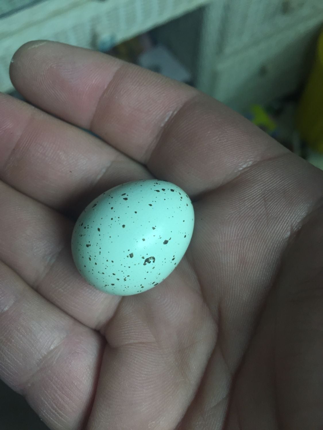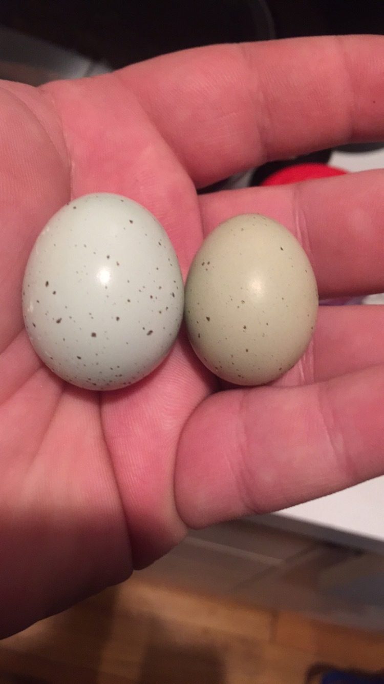 my english whites lay blue with speckles .My browns/wild types lay cream to tan with chocolate spots. My Golds lay greenish or tan with spots . They're pretty consistent with the colors as a rule.