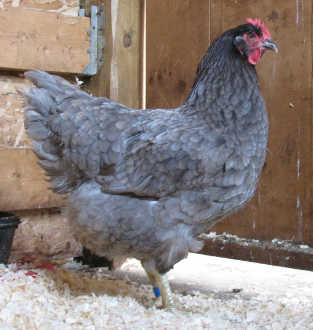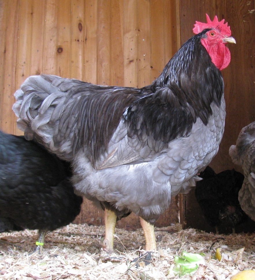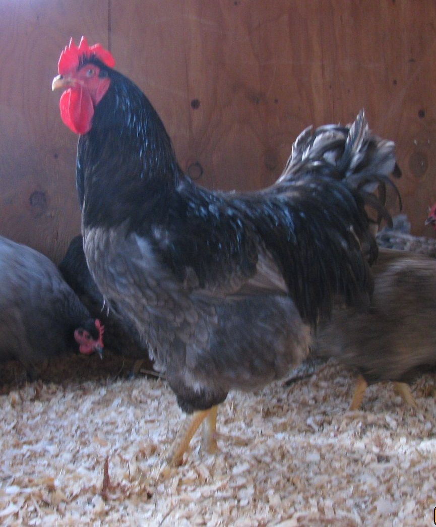 I agree, I have one with red ear lobs and yellow legs but her tail is far too long, at least yours has the body shape, it is all in the sharing.Slate with white skin. The Andalusian cross line is a long way from being show ready; I hesitated to even put this picture up. Challenging as it may be, there is no other way to achieve the proper color with the black lacing (not edging) that is described in the Standard. I have at least one Andalusian cross male with yellow legs and red earlobes, and am hoping to correct leg color within a generation or two. The color and feather quality are a substantial improvement over my main line.