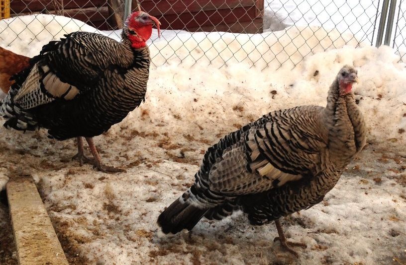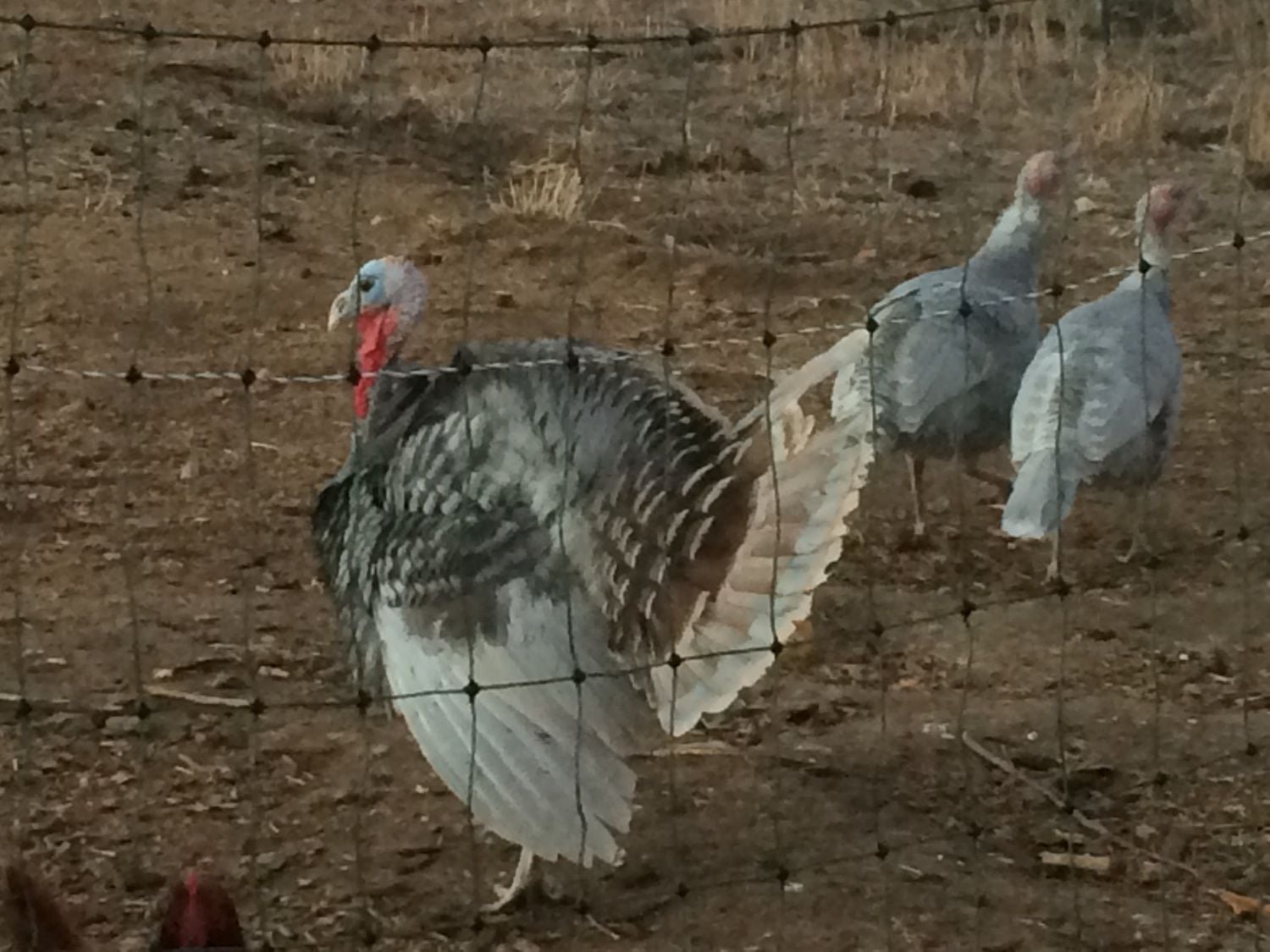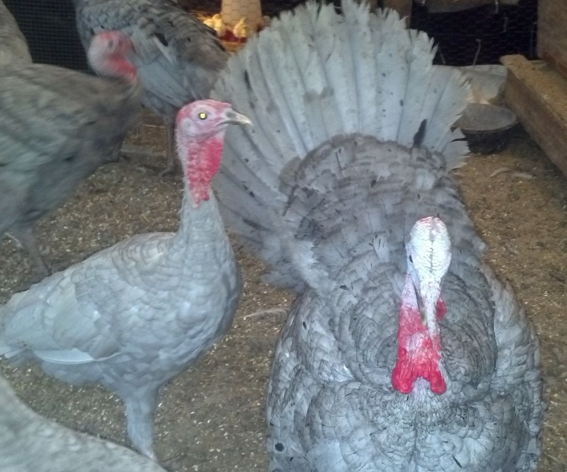 These are my first turkeys. Blue Slate and Self Blue. My only problem with them is their size. All my coops and pens were designed for chickens with small doors and gates. So they sleep in the rafters of the barn. I haven't made pets of them but they still follow me around as I do my chores. It's been a real learning experience that I've enjoyed.