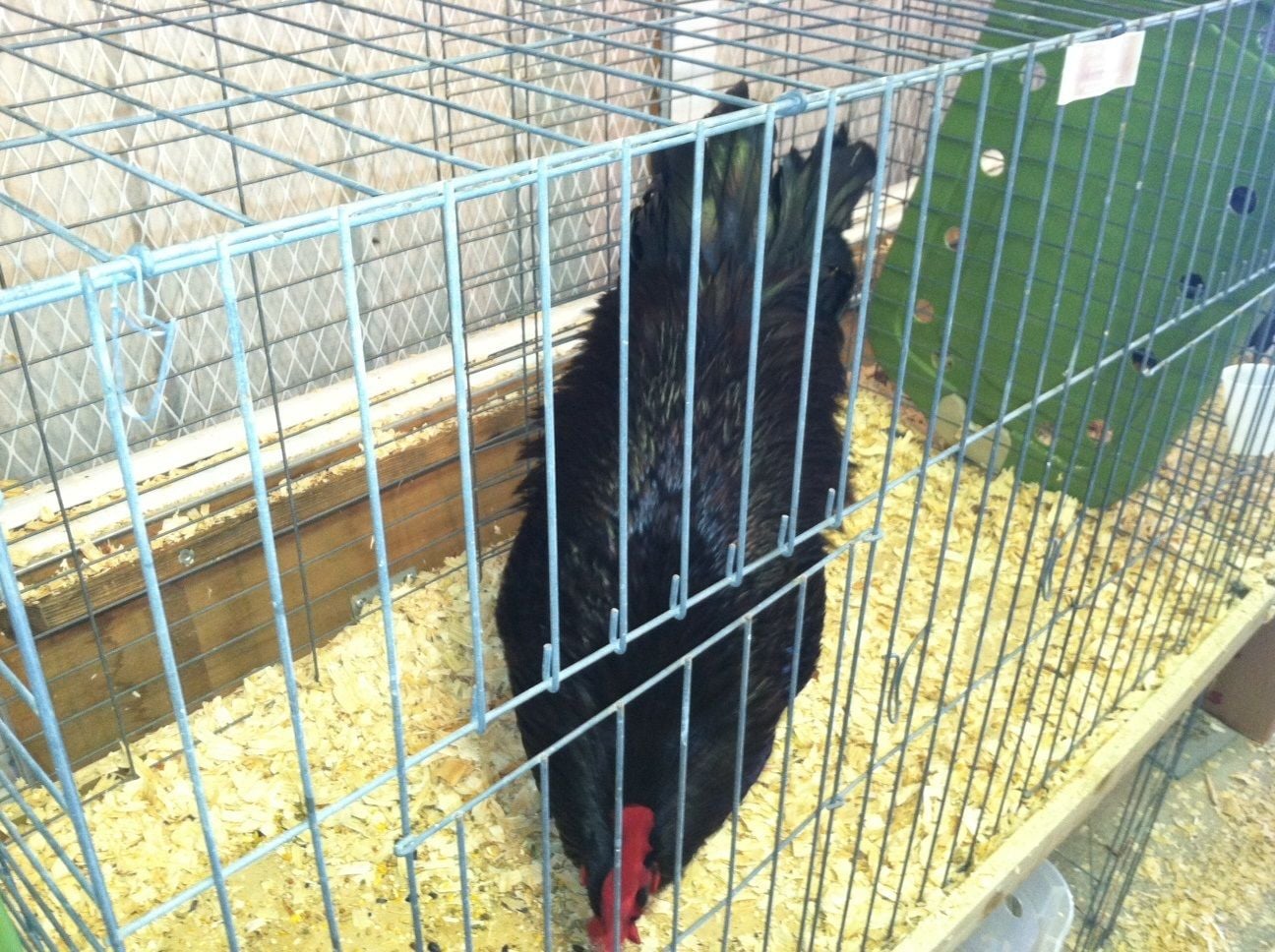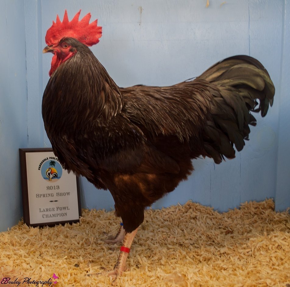 The box does not do the bird Justice for what they look like on the ground. Notice his width of back even all the way back to the tail. A good trait for this line of birds that seems to be true for over 20 or more years. Even the bantams you got from me has the same even width of back. Great color in the tail beatke green as can be.