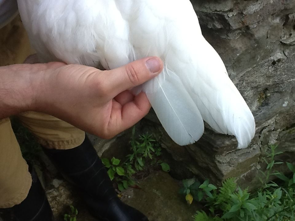 12) The last photo shows her feather quality as being "moderately broad and long". I'd like even more width of feather, but what she has is respectable.