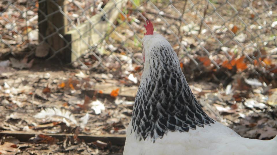 Well, this gets seen when the bird is Colombian and either eb/eb or eb/eWh. I doubt that is the problem here. Looks like you have a color imbalance. Should be able to fix that by more closely matching the depth of color in the hackle and/or undercolor when you breed him. ( interestingly, the old lit says to breed the Light Sussex like the Light Brahma. That can only mean in the very general sense that they are both Columbian breeds. Because Light Brahma is eb locus and Light Sussex is eWh locus. So if one breeds Light Sussex according to the Light Brahma, you may see the black stippling on the birds.