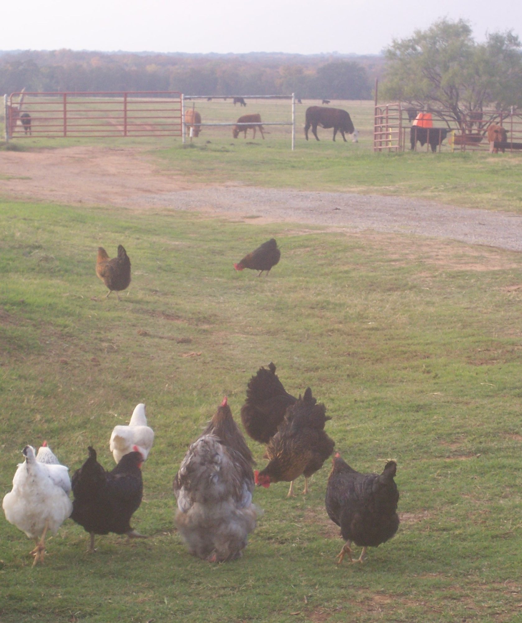 I've been planting trees trying to get more shade during the day time hours in the pens and barn area for both the chickens and the cattle. We have a few trees around the house and fruit trees in the garden, but had to stretch shade cloths over the pens last year in the drought.