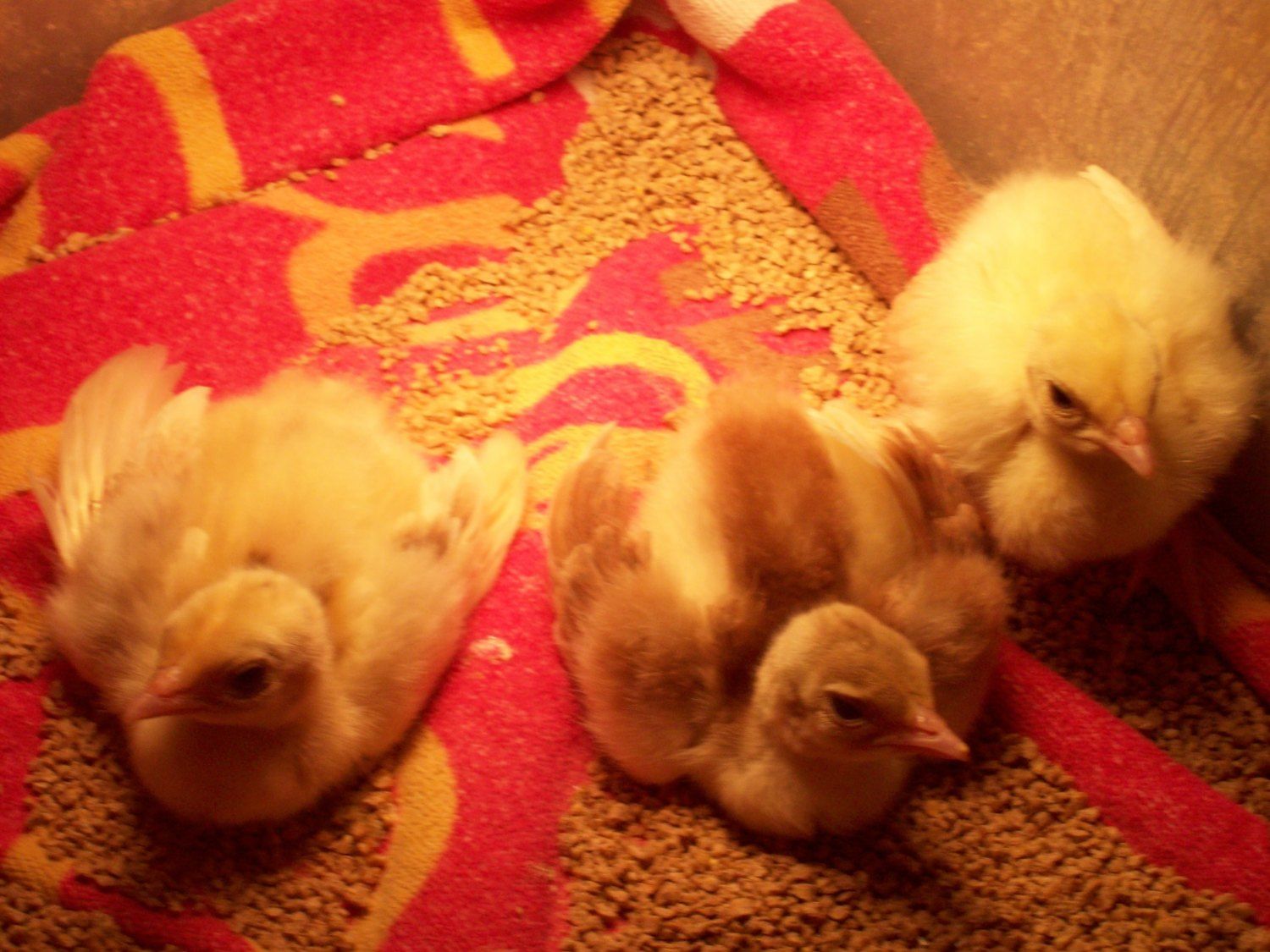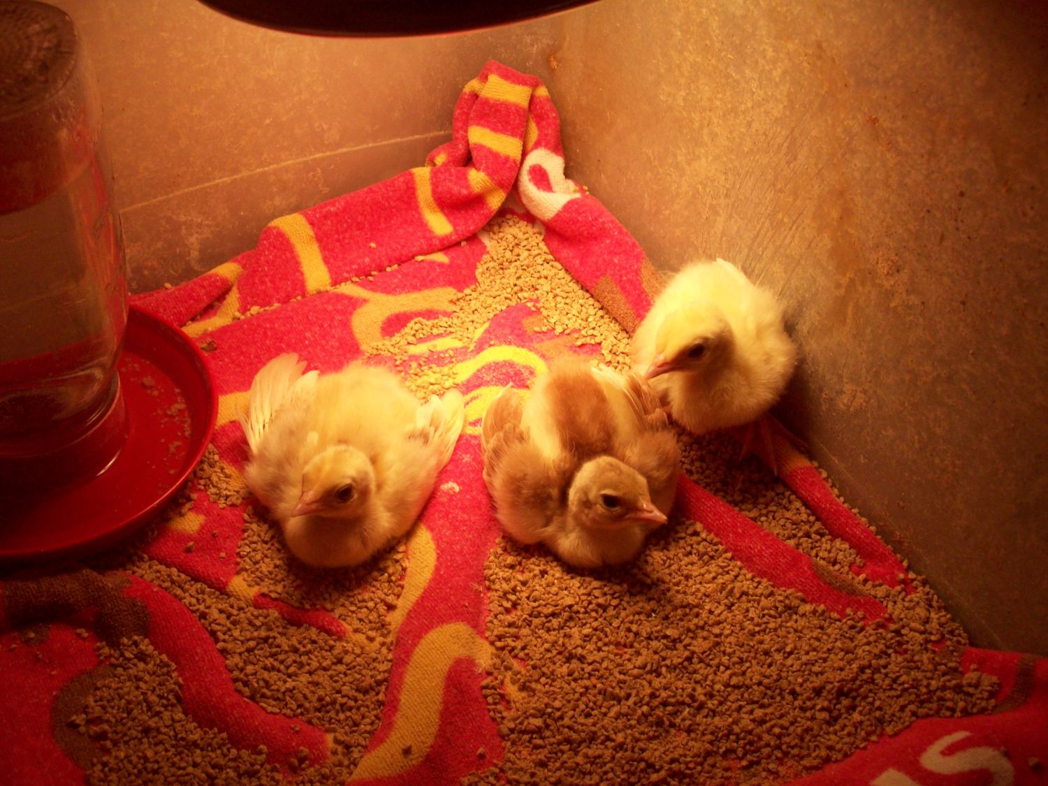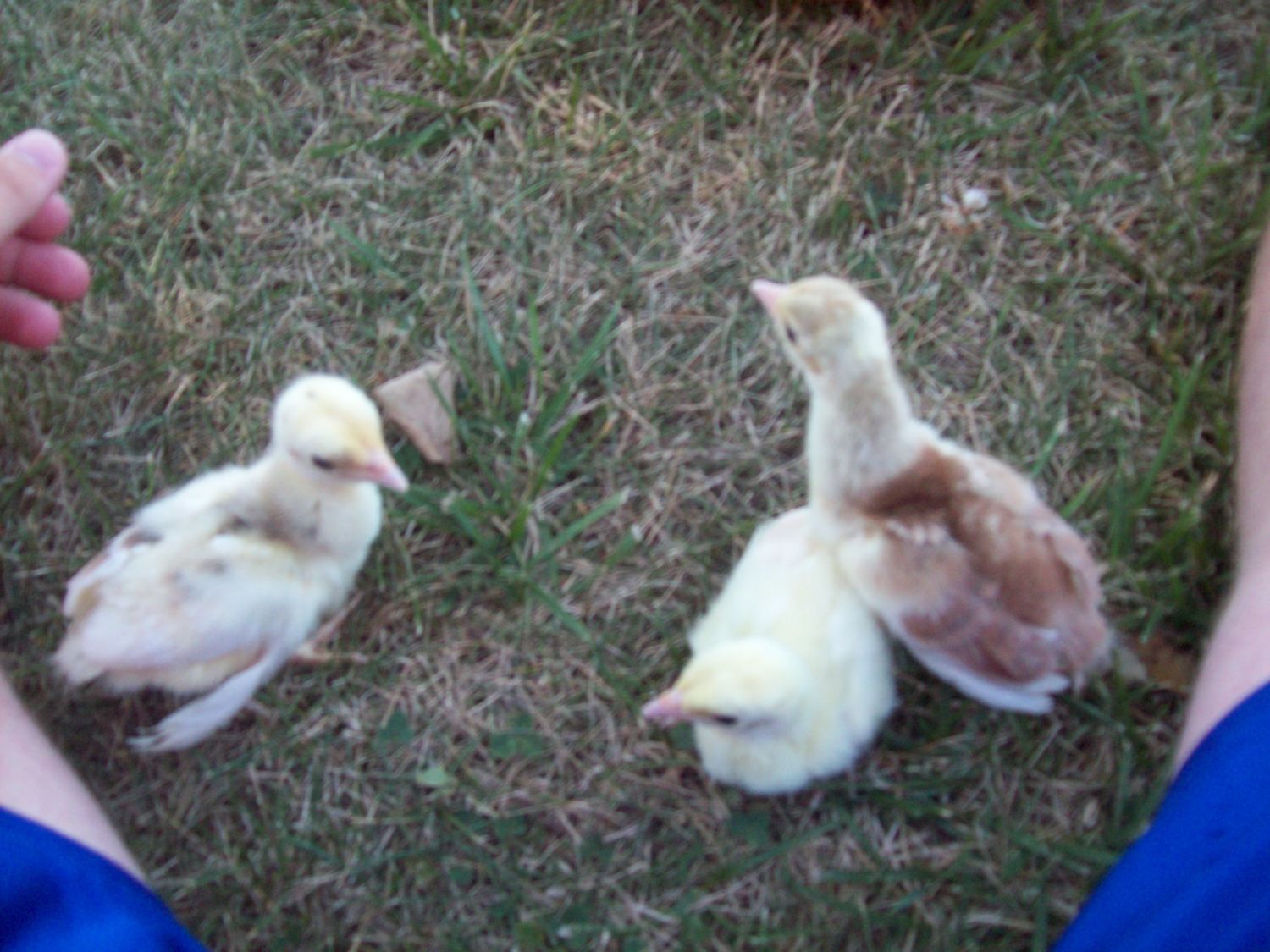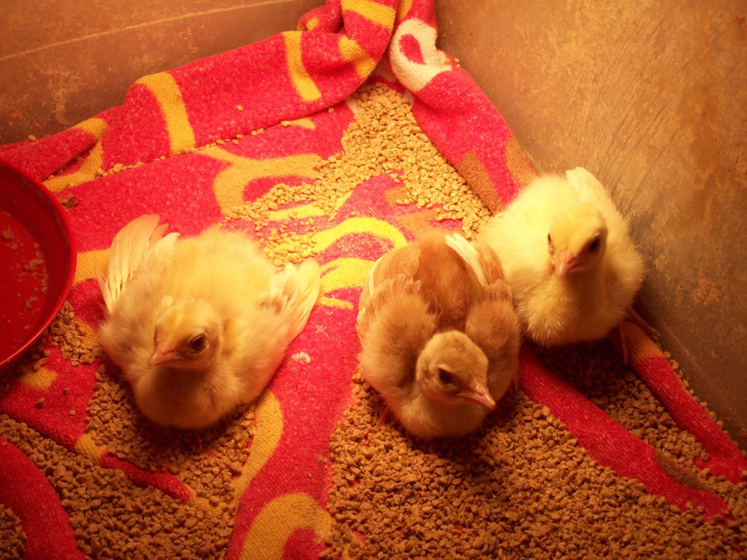 I'm a little worried for the Cameo, he/she looks like it may have spraddle leg but he/she was perfectly fine in the brooder when we went to go pick them up. They are just day-olds, could it just be because it may still be weak? I have them on a towel in a warm brooder with feed scattered on the floor and they have a waterer with vitamins in it. Its left leg just sticks out to the side and he/she lays down.
