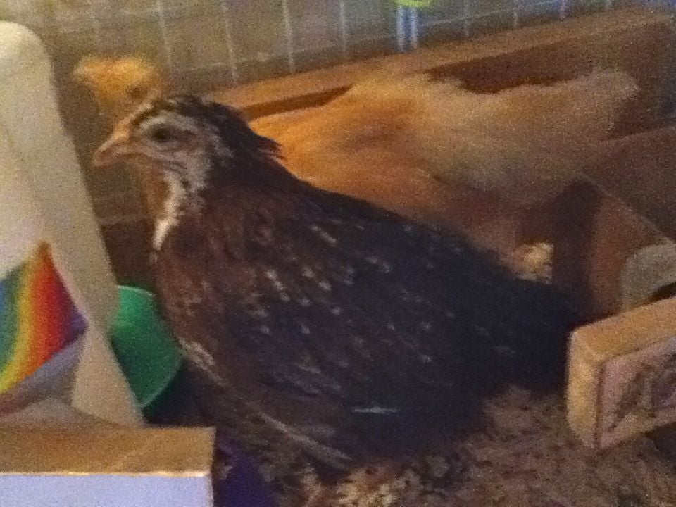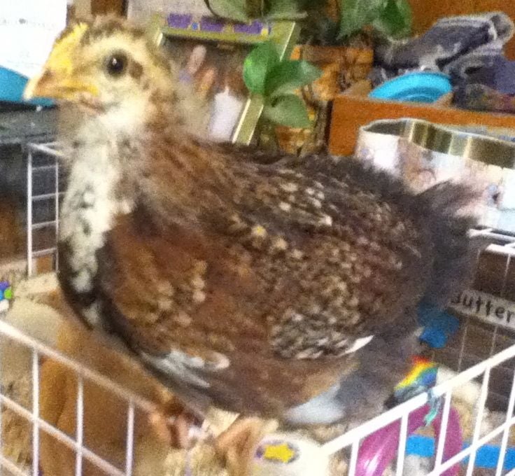 Ok. So Rosie is now almost seven weeks old. She is completely feathered out, (which is a sign that she is a female I think) her comb has gotten slightly bigger but it's still yellow. Her wattles, however, are still the same size as they were two weeks ago. So what do you all think of "her" now? (The fist picture was taken a week ago so she has feathered out more now. And sorry the pictures aren't very clear.)