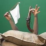 NO!!! *Rips your white flag and hits you with the sand bag!*