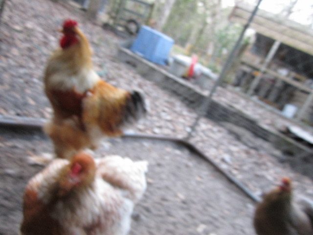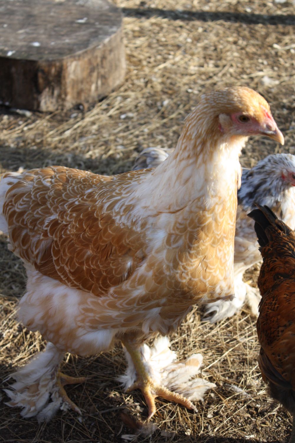 Bad shot of our cool Brahmacauna....she lays drab olive colored eggs! She really has a big beard and muff. This is one of Big Boys daughters too.