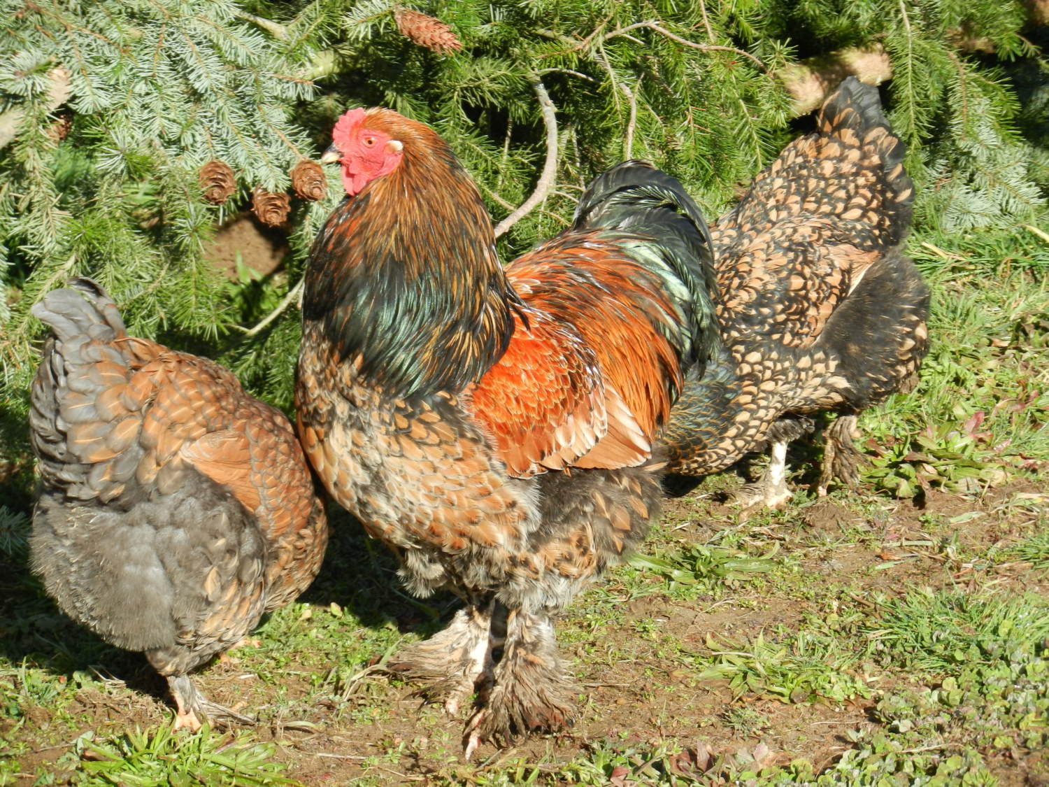 Agreed with above said, my personal experience though is that they're friendly yes, much more friendly than the average chicken, but of course can't beat some other breeds in rooster stability. As for feet - They're fine in dry or semi-dry areas, they do fine in rain too, but in seriously rainy places (chances of you living in such are low) they don't do as well, their feathers can indeed get muddy and weigh them down, and all the moisture and bits stuck in there can often irritate the feathers. As long as the Brahma doesn't have unwanted stubs or ingrown feathers or the sort, it will be fine though. Just not as agile in the muck