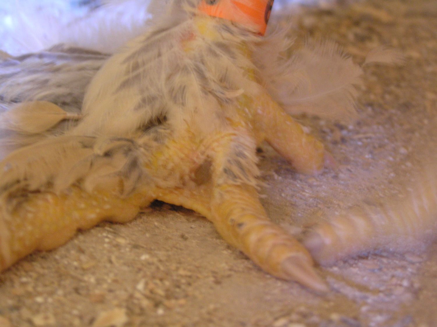 The one on the left is the one that passed away. I have to get a decent picture of the other hen later I thought I had one on my computer but I don't. The other hen who has the blurred face in the picture only weight 5 pounds 7 ounces.
