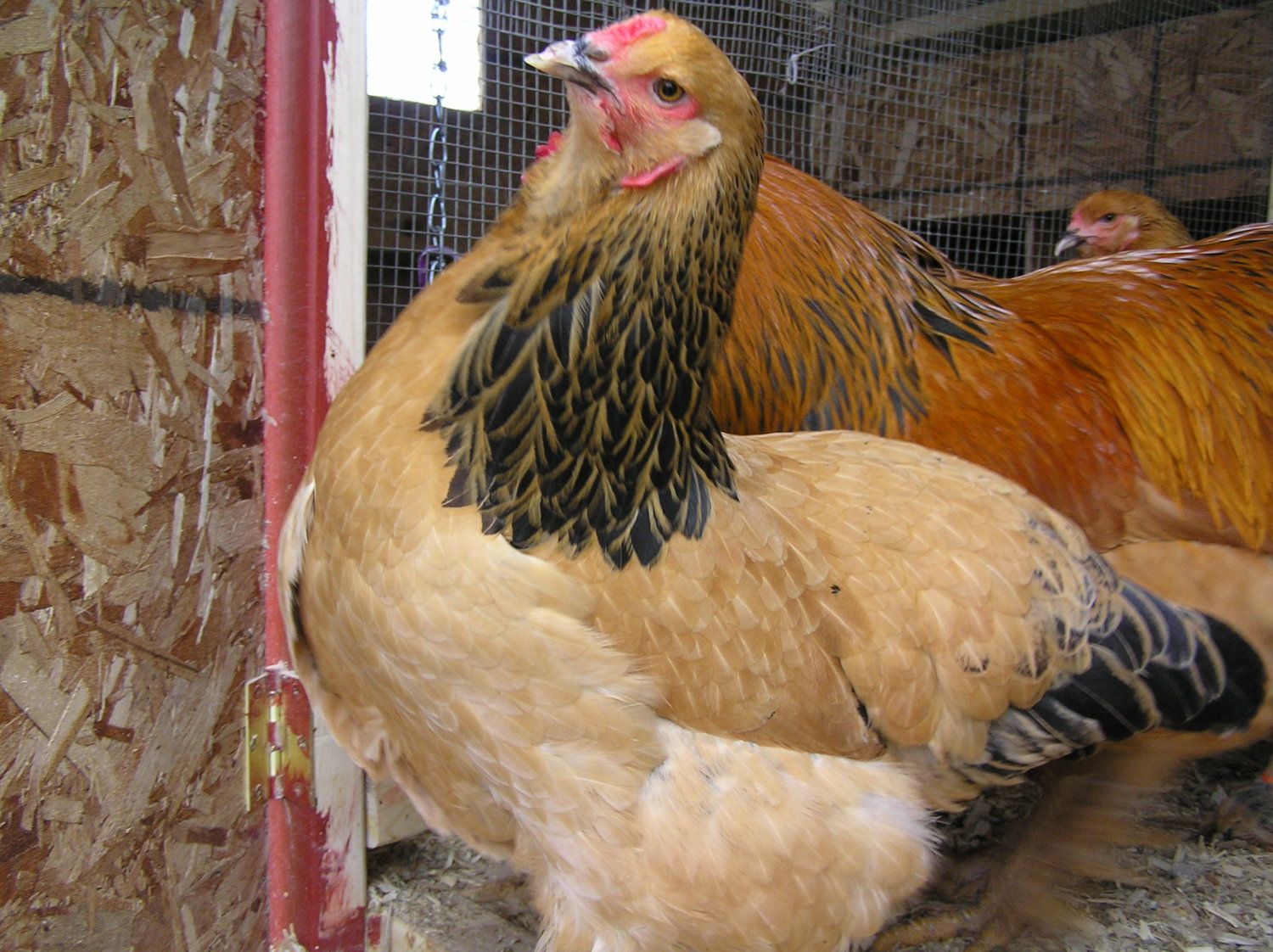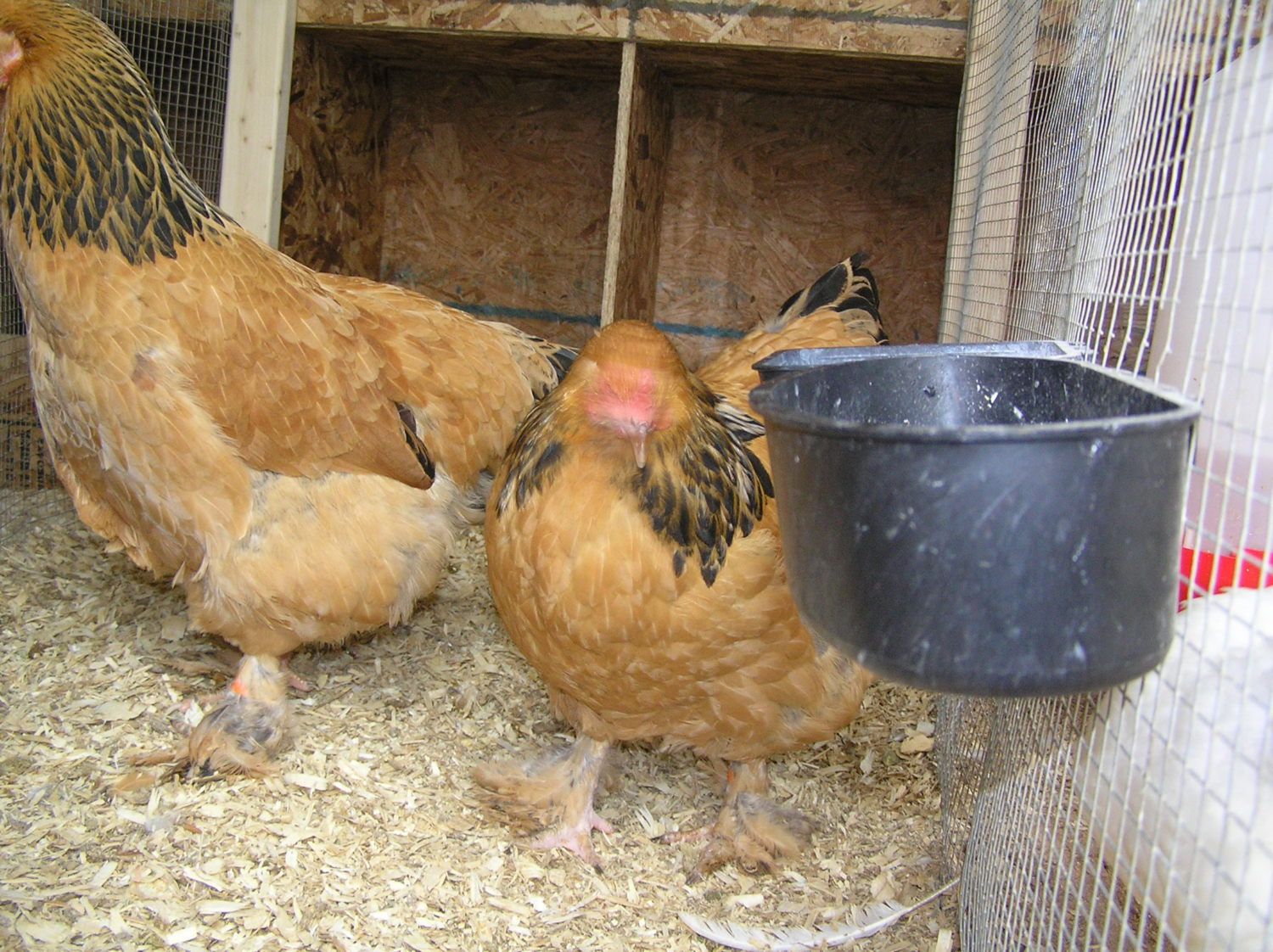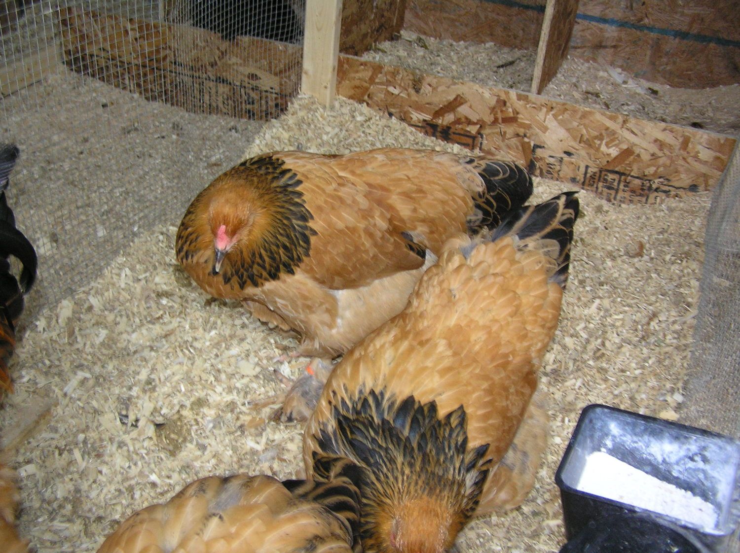 Oh Ron doesn't have lights. Last I knew he was trying to find some to make his buffs larger. I will get a better picture of the chickens feet. This is the only one that has too much feathering. For right now I was thinking of taking one of my lighter hens with less foot feathering and mate them. I will definetly be keeping two birds that have not enough black and not as much feathering on the legs.
