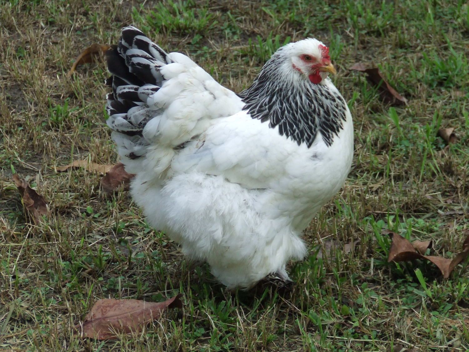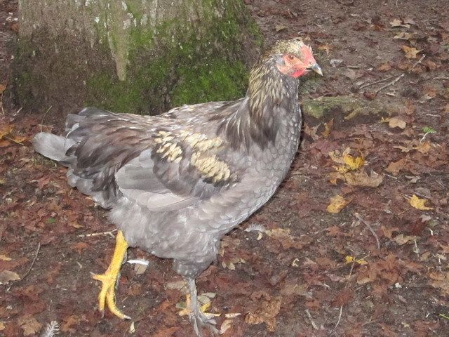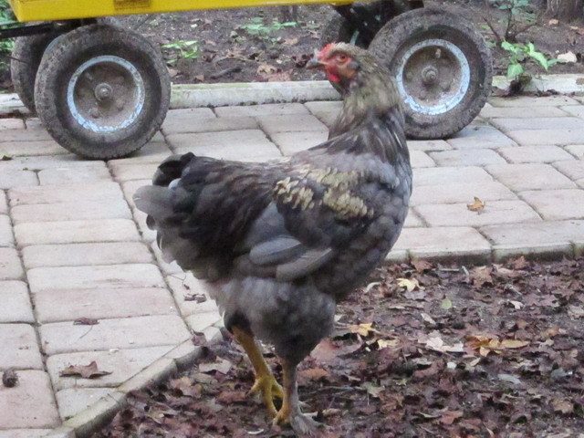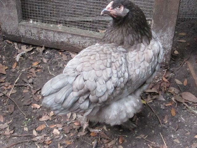 Very beautiful birdOkay, in an effort to get us back into safe waters, here is one of my project Brahmas. I have been getting a few solid blue girls, but only this one blue guy. At least he started out blue. Now he is looking altogether unlike anything I have ever seen! The pictures do not do him justice. He is mostly blue with this light tan coming out and now almost chocolate on his back. He is from a black Brahma hen and a lemon pyle roo.
