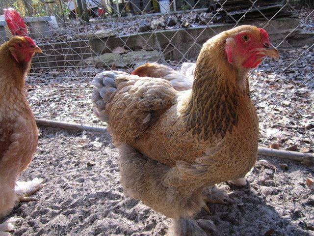 My young hen Rusty, Blue partridge brahma (its what my 10 older chicks are and who we are making the new coop for...