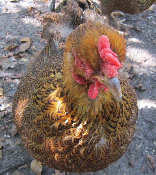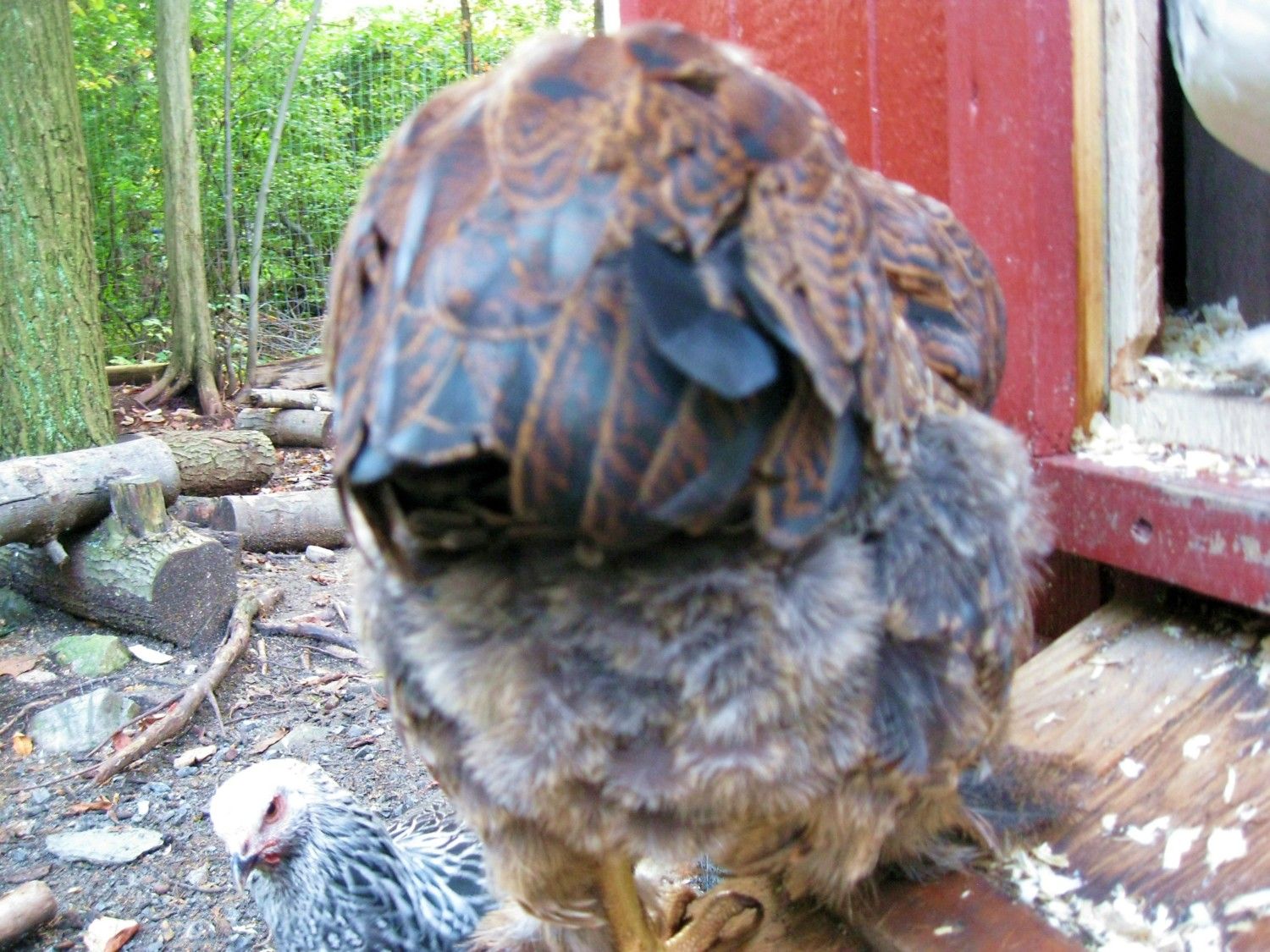 I also was given one young hen below also told Blue Partridge Brahma... this bigger one is a sister to these chicks momma...pictures are last...