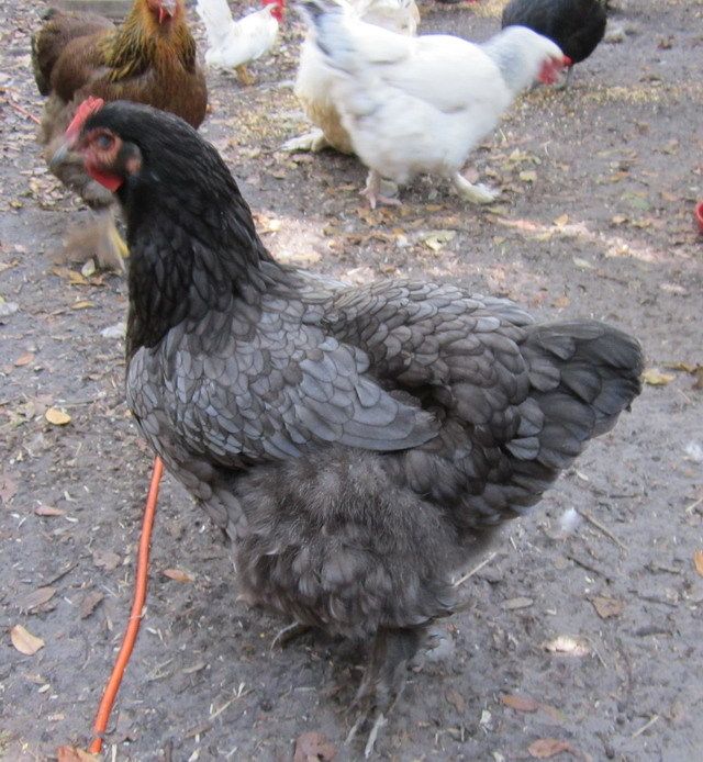 Blue partridge pullet, almost laying age, should be any day now.