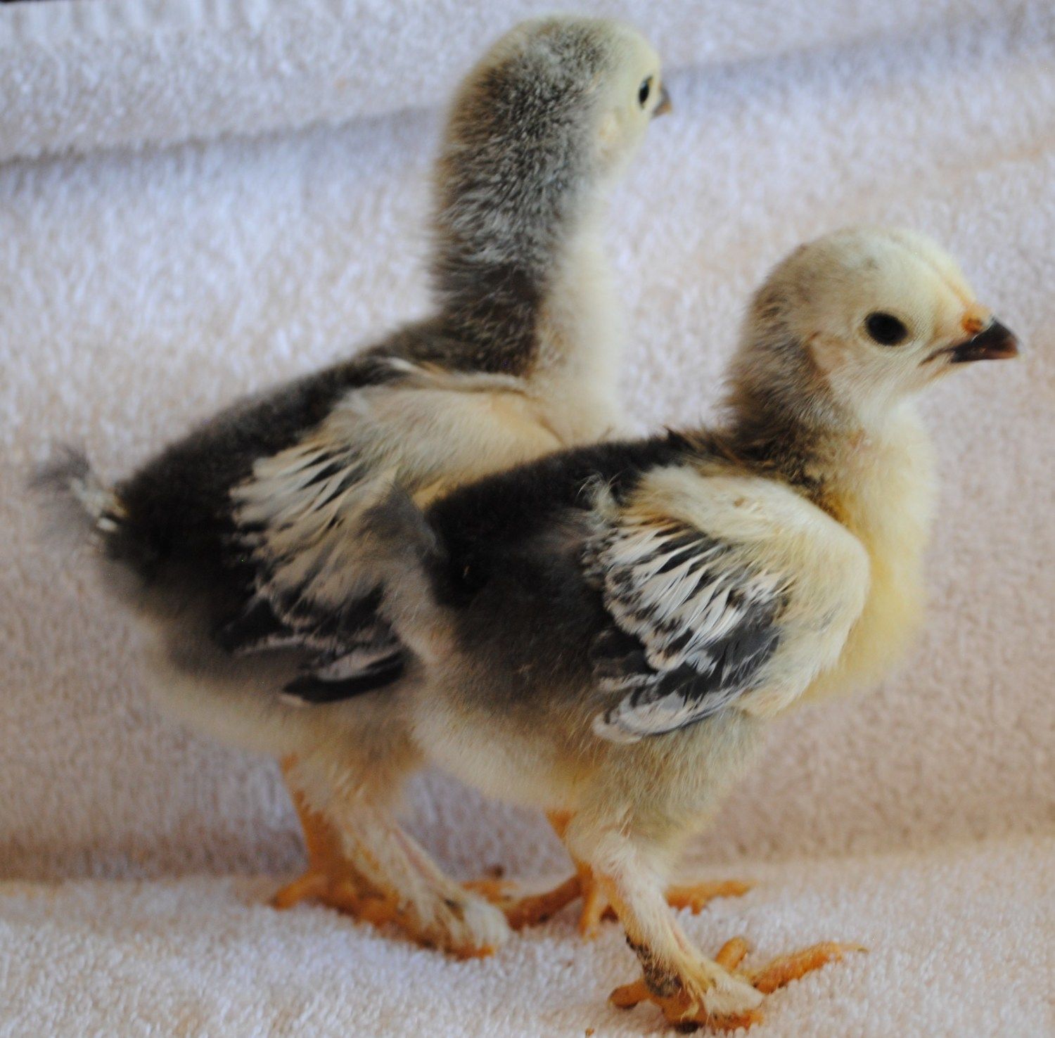 These are pics of the Buff male x Light female chicks. This can provide a reference for any who wish to attempt this cross. I will try to provide additional photos as they mature. Neff Buffs x Lindenborn Lights.