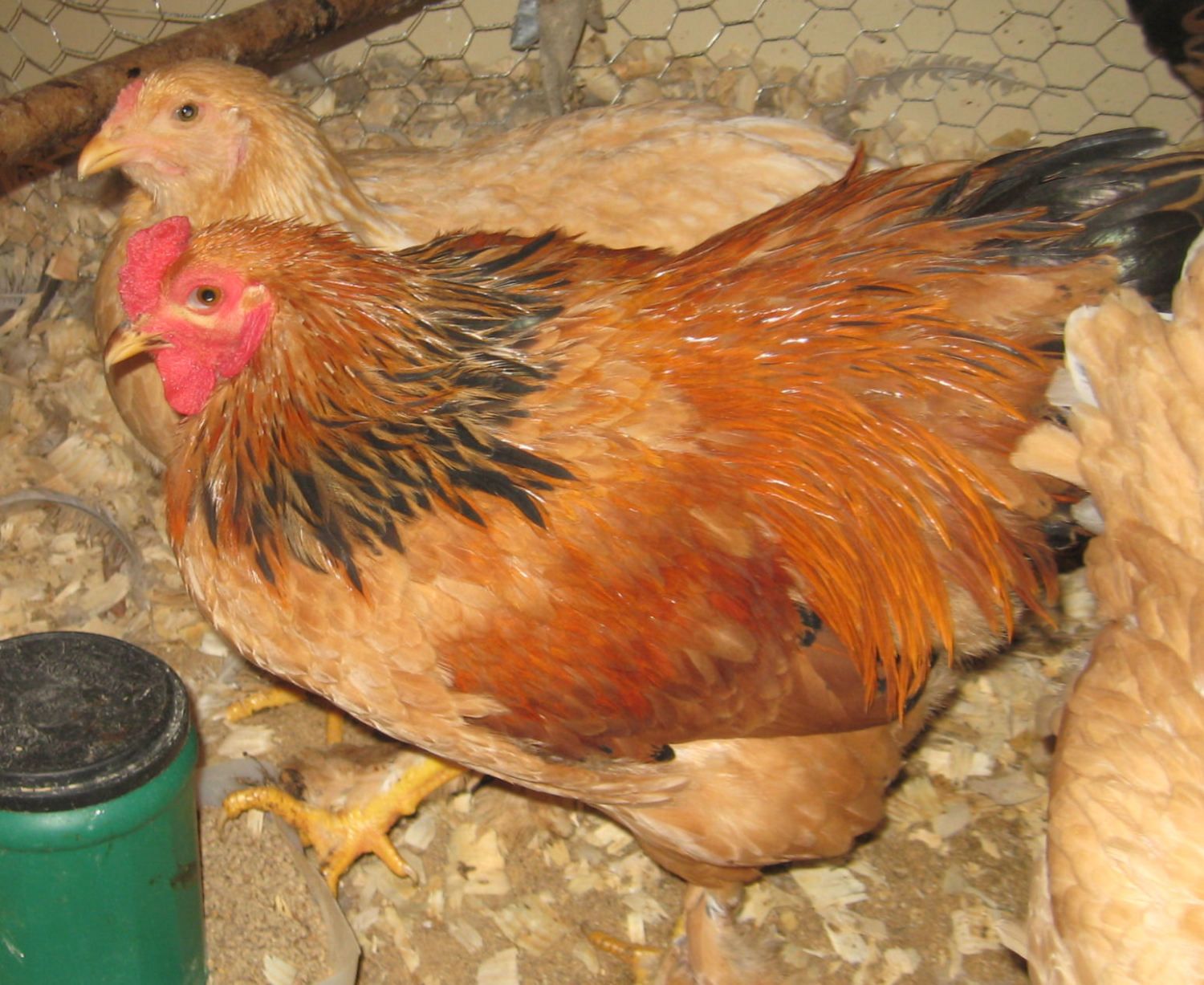 Thanks for all the info from everyoneVery informative ..I bought the eggs as palomino eggs Their roo shown did have white redand a cream yelow i think on it but i think black too not sure now A mix of these colors The pullets seem to both be a light color with a slight white spotting More predominant when younger faded now. I have never seen a Buff Brahma roo so dont know what they look like either to compare