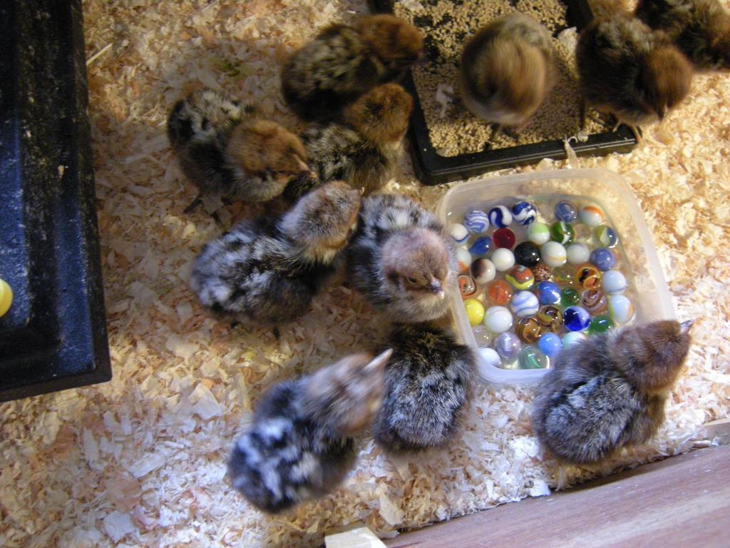One chick is however very white, even for a Campine.