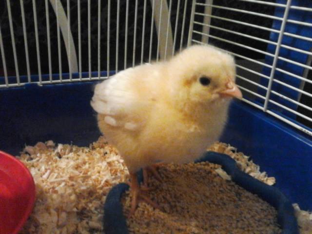 No heat source yet, I was only able to purchase food and a waterer with this paycheck. I honestly haven't even had the baby 24 hours, but I knew food and water were my biggest concern. If it gets too cold in my room, I have a heater I can turn on. Right now the room is very comfortable, and I'm keeping a close eye on the baby. She's very chirpy and loves to be held.