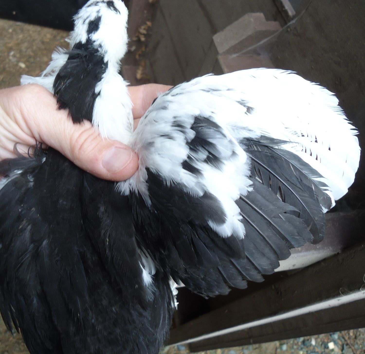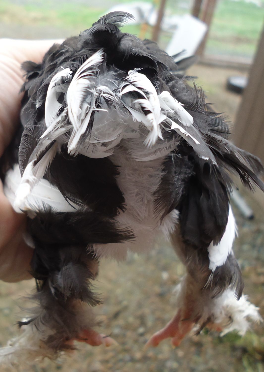 Update on color development....I was worried about all the solid white and black but see how the white is mottling to black and visa versa? Can't wait to see him grown! He will be my first mottled chick. (Hoping for rooster).. last pic is how he looked a few months ago..