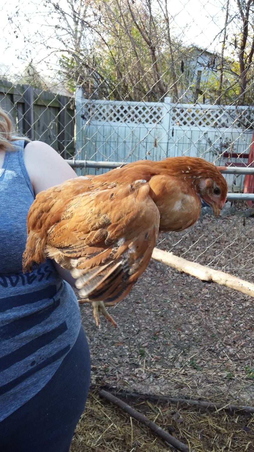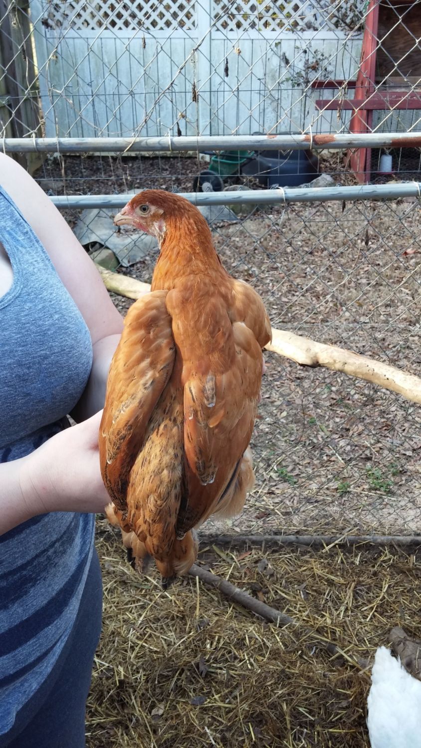 Production Red (probably sold as a Rhode Island Red or New Hampshire) Pullet.
