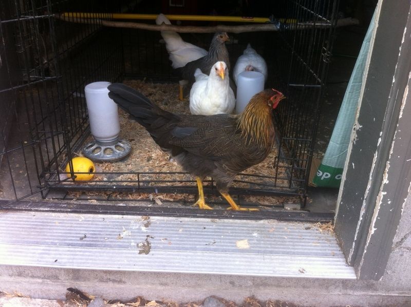 We have been wondering about this "gal" from the start. She's slightly bigger than the rest, and her neck feathers are much fuller... though her temperament is fairly similar, she sticks with the flock, etc. Her voice does sound slightly different but I haven't heard any real crowing attempts. We think they are around 10 weeks old, and I'm itching to know if she's really a girl or not! Also, any breed ideas? Her "ear" area has recently turned sort of greenish