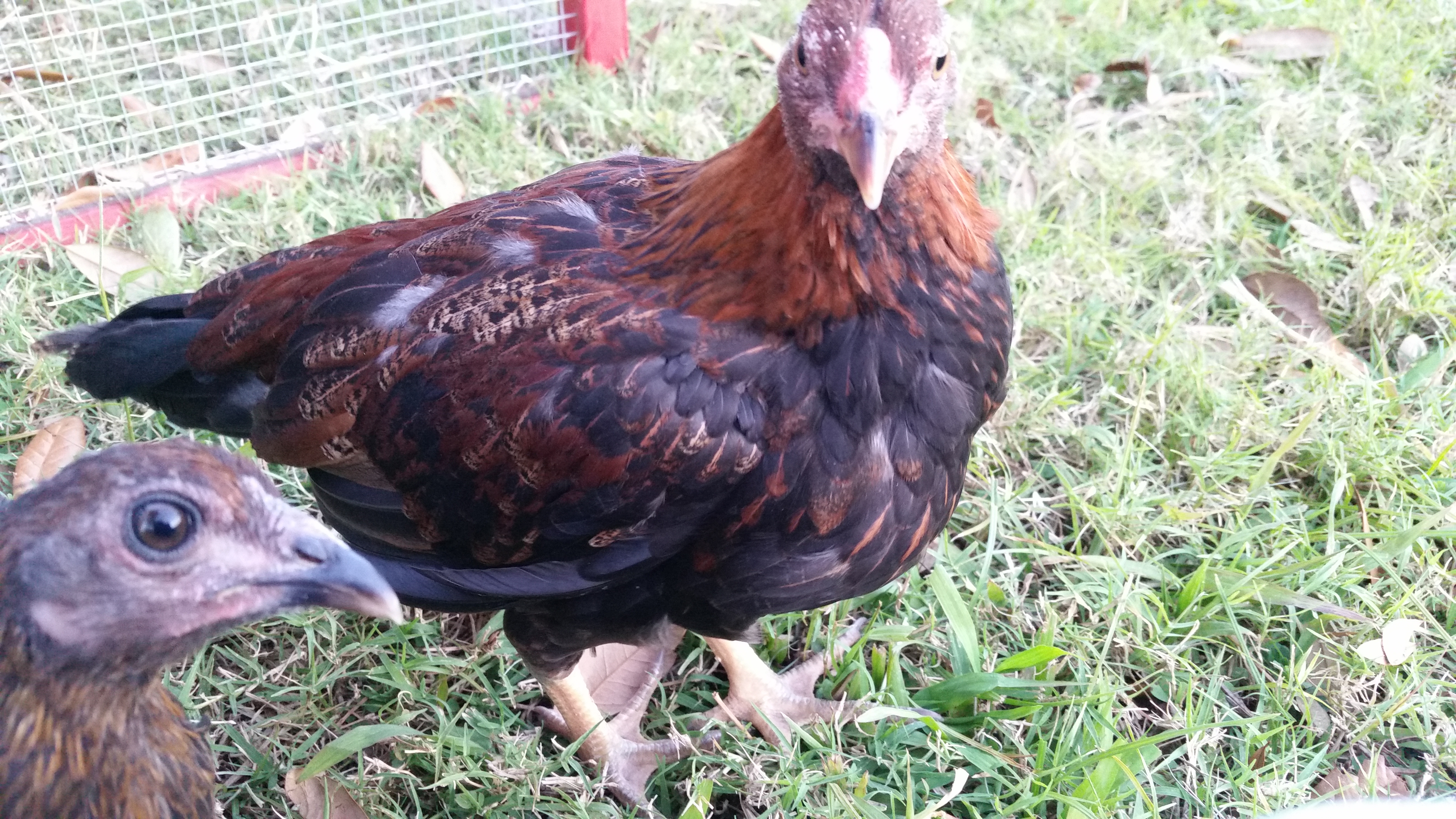The ones that look like this one, with the dark red through the wings and black chest, are male. That is male specific coloring, regardless of breed. They look like they might be Chantecler mixes, by the way.