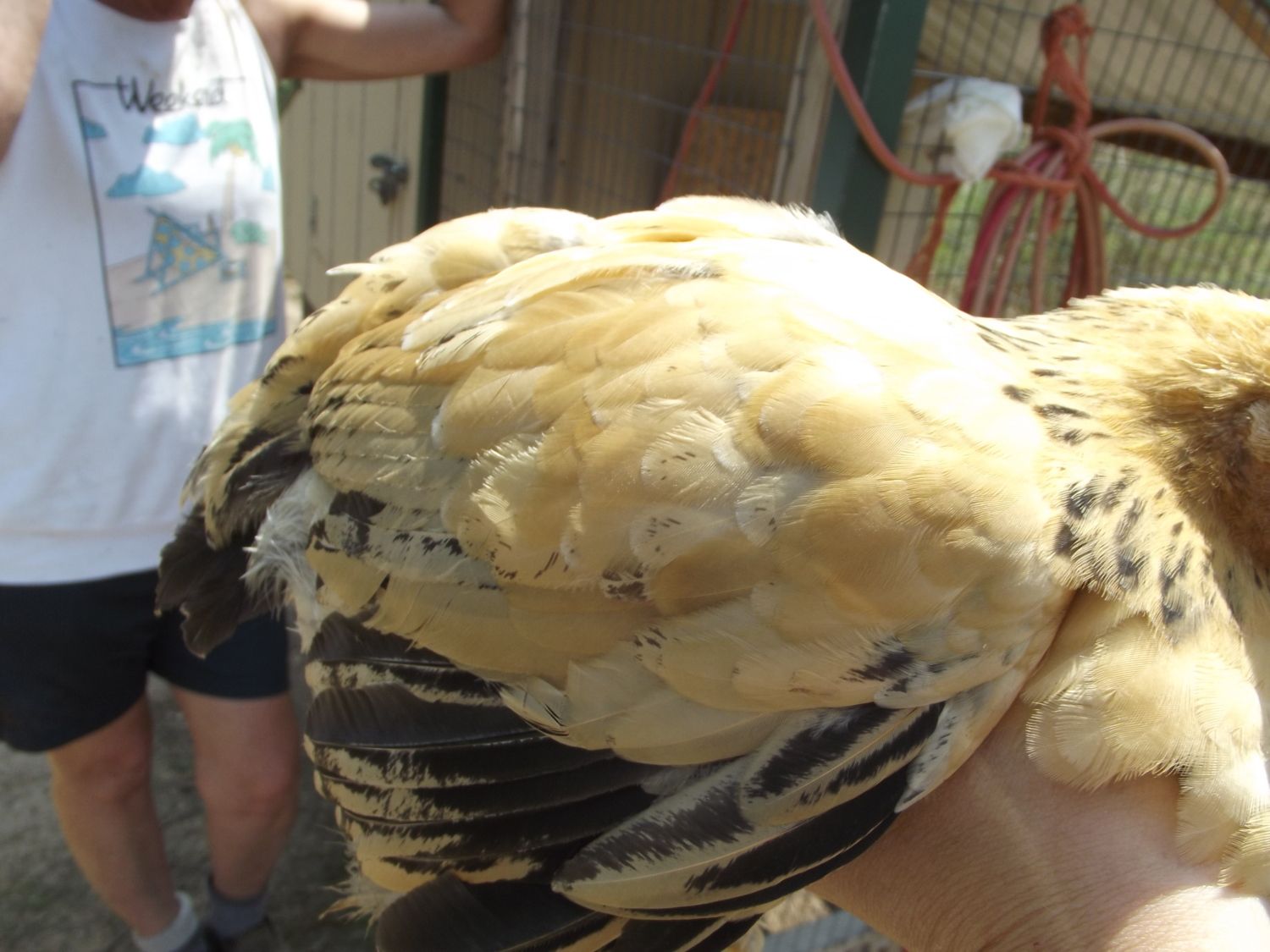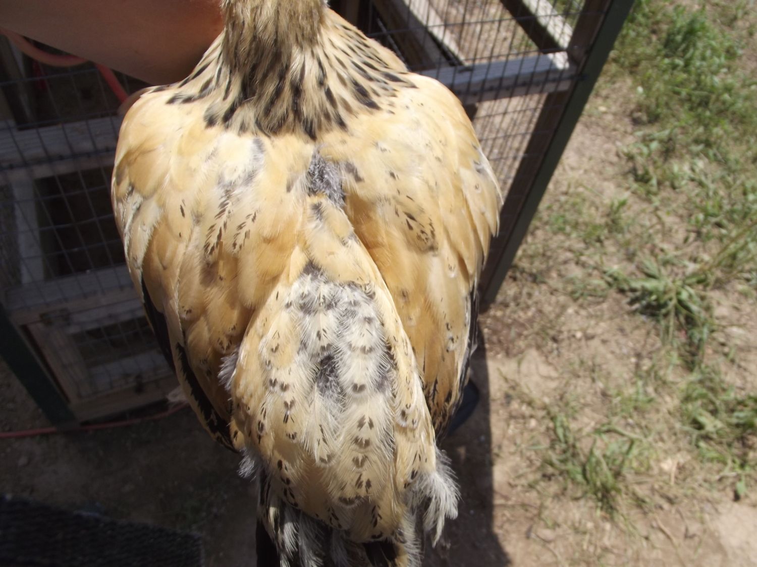Number 05:is nick Named Cucoo Butt, causeI'm always mistaking her for Cucoo at first glance; But the thing that lets me know I've gotten it wrong is she only has the Cucoo markings down by her tail feathers & not all over her like Cucoo. Top Right Cucoo, Lower Right & Center Cucoo Butt,