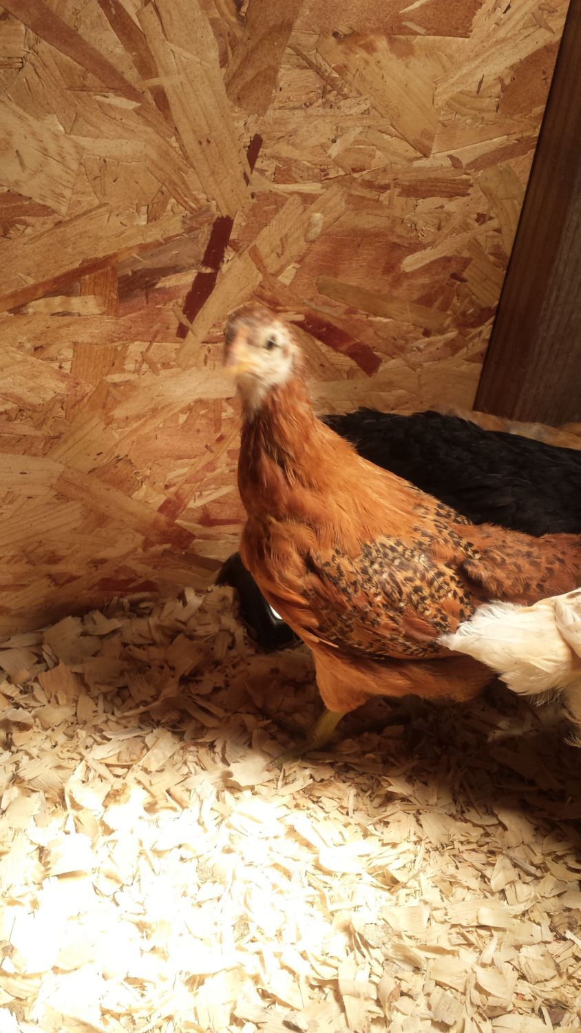 Got my barnyard mix starting to look like chickens now wondering if my intuition is right I figure 6 pullets and one roo