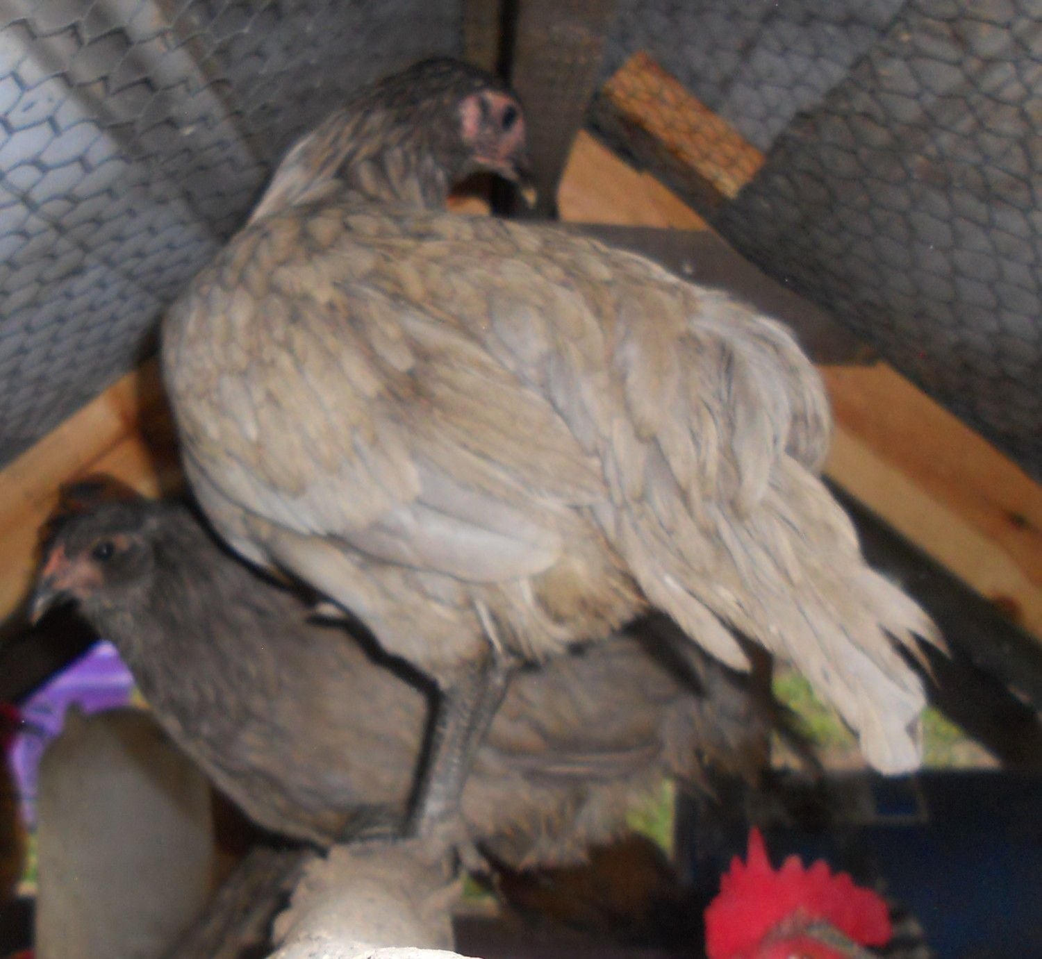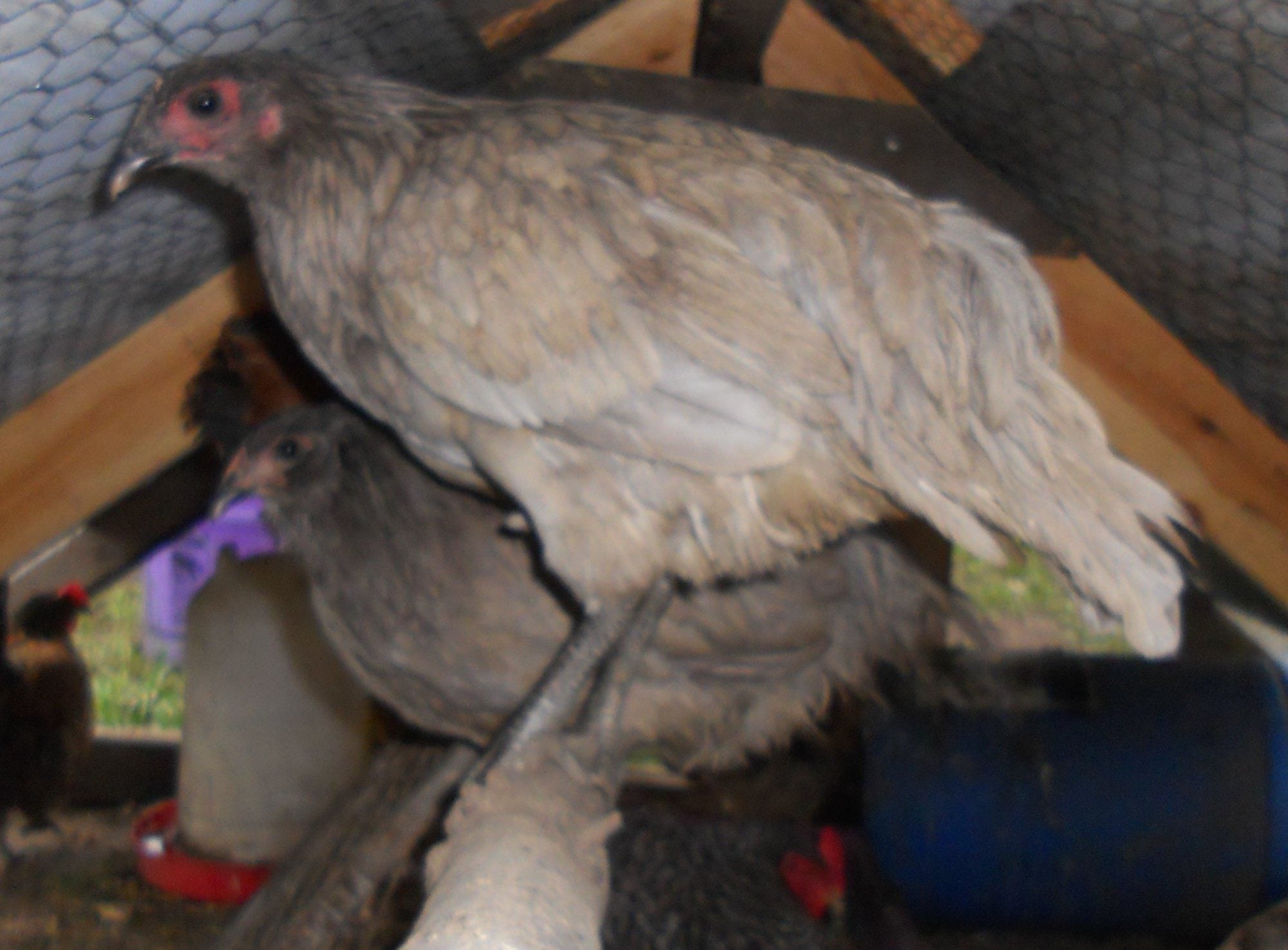 Just got a couple little blue chickens. I think the seller said they were born in March. I can not remember for sure what breed they were. Probably just easter eggers, but I know there are a couple similar breeds. Of these two, one is lighter than the other and one has a darker head. Also, one has pretty long ear tufts and the others are shorter. They are hard to see in these pictures. I will try for better ones this week. Also, I was curious about any ideas on gender. Sorry they are still a lil wet in the pictures. It was pouring when we picked them out. Thanks in advance.