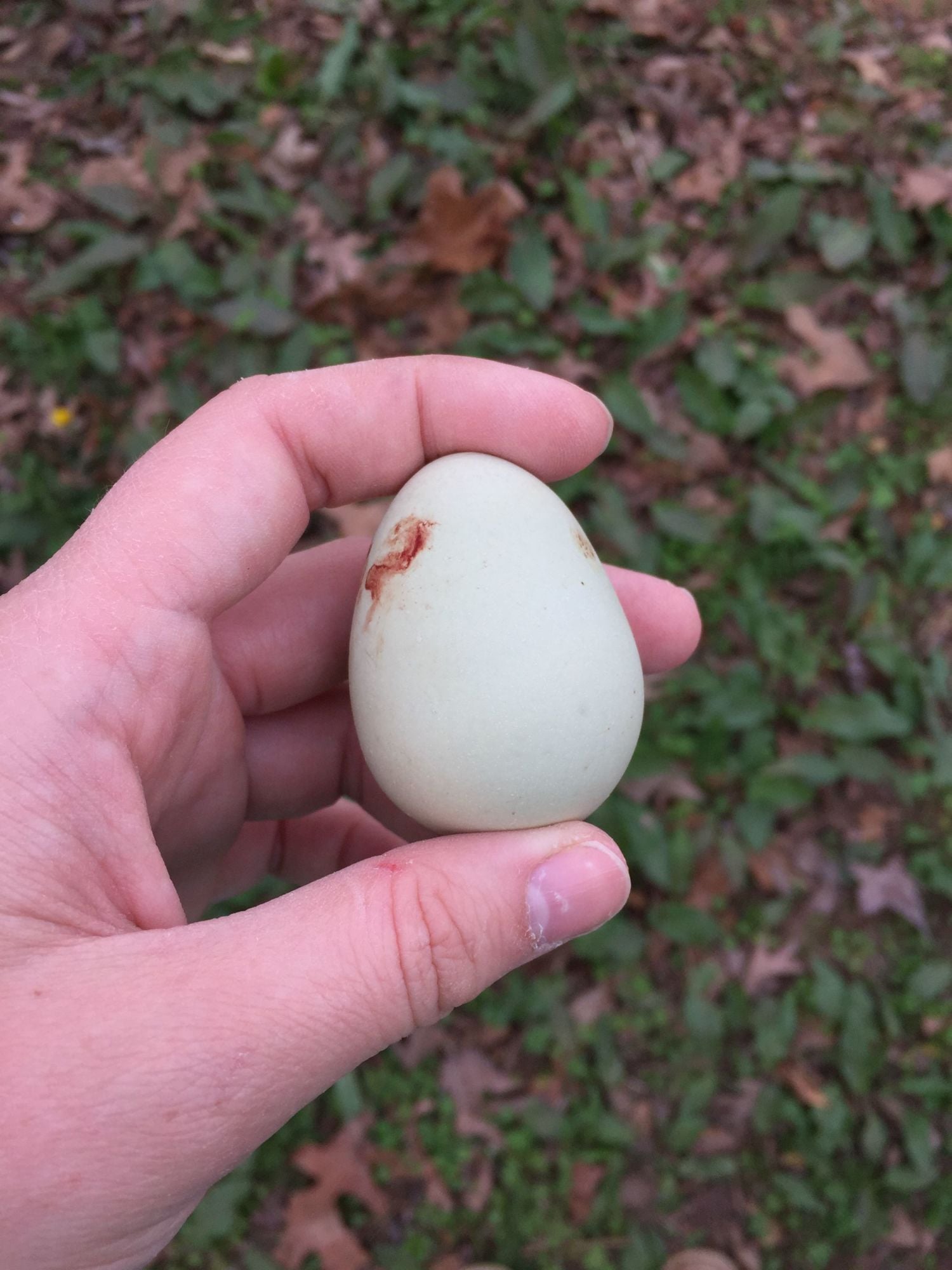 I took a picture of it and it is down below if you want to see it. I also noticed she has blue ears. She does not have any fluff on her feet, just her ears. She has a pea comb and she has blue coloured legs and feet. Her feathers look almost like a lavender colour or a very light blue. She does have a few dark feathers that look almost black in her tail feathers. Her egg is an olive green colour.