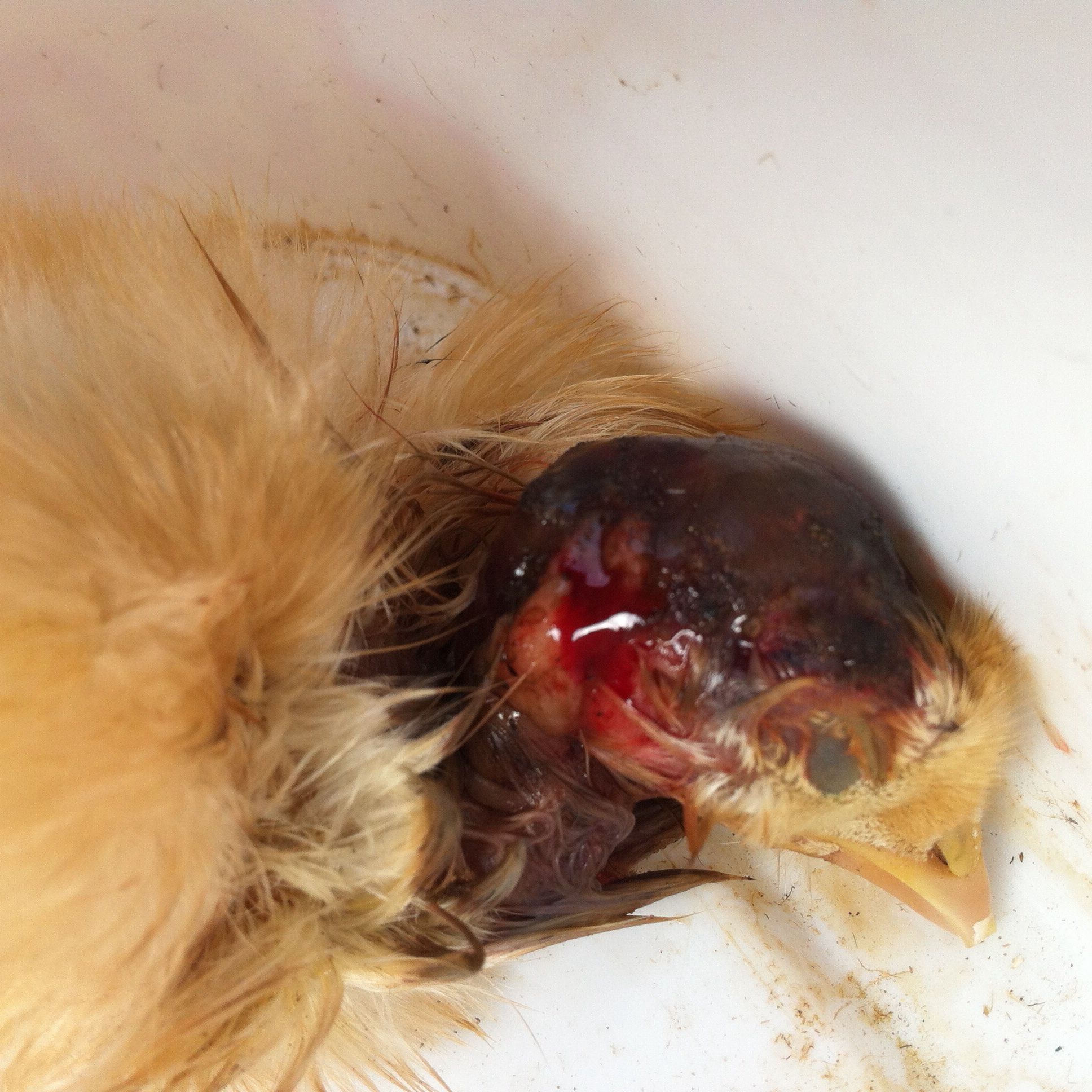 I have a problem. A 3rd Buff Leghorn went broody! The Problem is that she moved into the nest with the first broody, who had ten eggs. Hatching went well. 9 of 10, and the last one was infertile. Then the fighting started over the chicks, these two were being pulled apart it seems. I found the Buff Baby already injured. The black one they pulled the fur off of right in front of me.