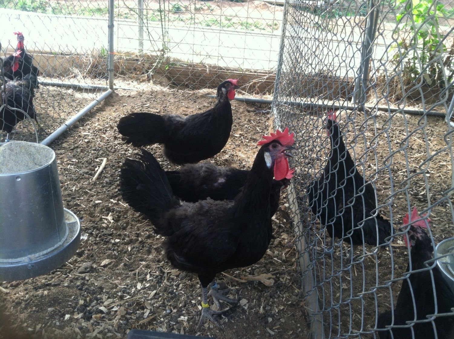 Here is a photo of some of our breeding pens devoted to Minorcas. Not a great photo unfortunately. I have incubated about 200 eggs so far from 5 different breeding s.