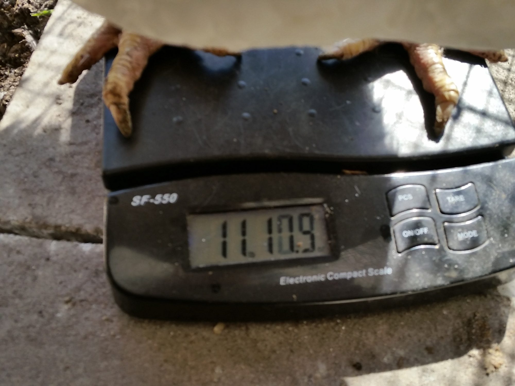 Well, Betty was hatched 02/06/2015. That makes her 21 months old. She is big and fat and not laying eggs right now. She can fight like a rooster, and she is still alive afterwards. I will take pics and weigh her tomorrow. She lays 75g eggs. 69+ eggs in 2016. She went broody! Then she molted. She doubles on occasion and some are wrinkled. BamBam was having a difficult time settling her eggs, Bob was much better, but I do not like the 3/4 CX. They are just too sloppy for me.