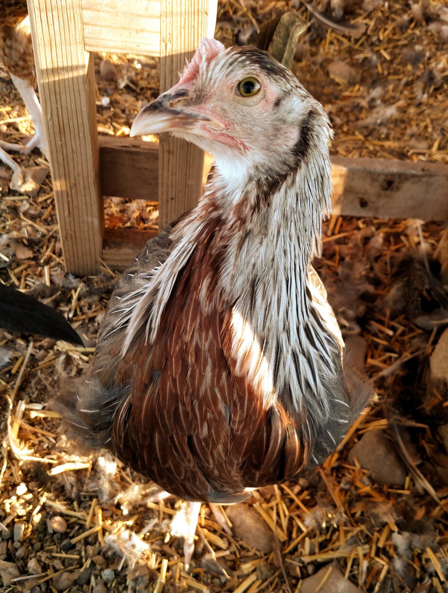 )And finally, my obsessively affectionate, can't stay away from me SGD pullet, Celine. Seriously, this girl would probably live in the house with me if I let her. I'm amazed I managed to keep her at a far enough distance to even get this photo. She weighed in at 3.12 lbs @ 14 weeks with a 4065% growth rate.
