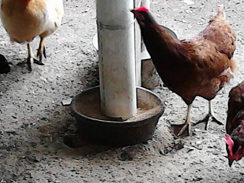 Here in Alabama we have alot of humidity so sometimes when it rains the feeders stop up and we have to lift the pipe a little and unclog it. That is why it has more feed in it right now. It does not happen much and we have two so they won't be without food.