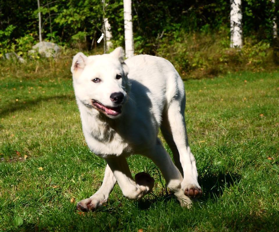 Speaking of pics...It's a beautiful Indian Summer day here in the West Virginia mountains. I plan to get some pics of my 'big puppies' this afternoon, when the kennels have been cleaned. In the mean time, here's a pic of my Ovcharka Bi### taken when she was about 9 months of age. Unlike some reports, this gal has been 'as advertised'. She's not as crazy as most of her hybrid offspring but is very protective of the property. These dogs are let out at night to keep out all sorts of predators but only after the day-time canine guards are safely put away because they would likely kill them as well as every chicken that couldn't get up out of their way.