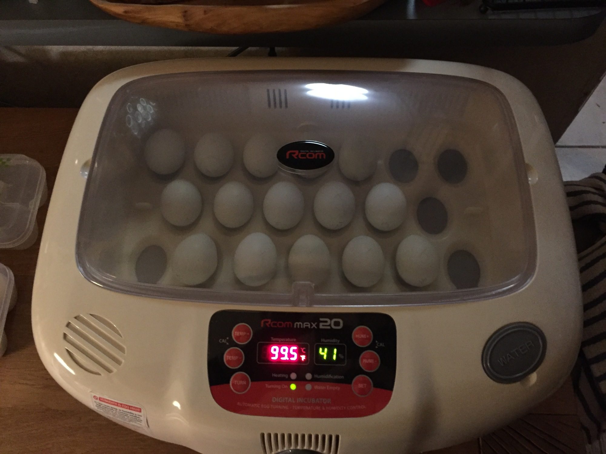 That's strange, K...I've used the same 'bator and never had a problem with that. Humidity stayed perfect throughout and hatch was normal. I really like the Eco 20 and would search no further if I intended to use a 'bator for hatching.