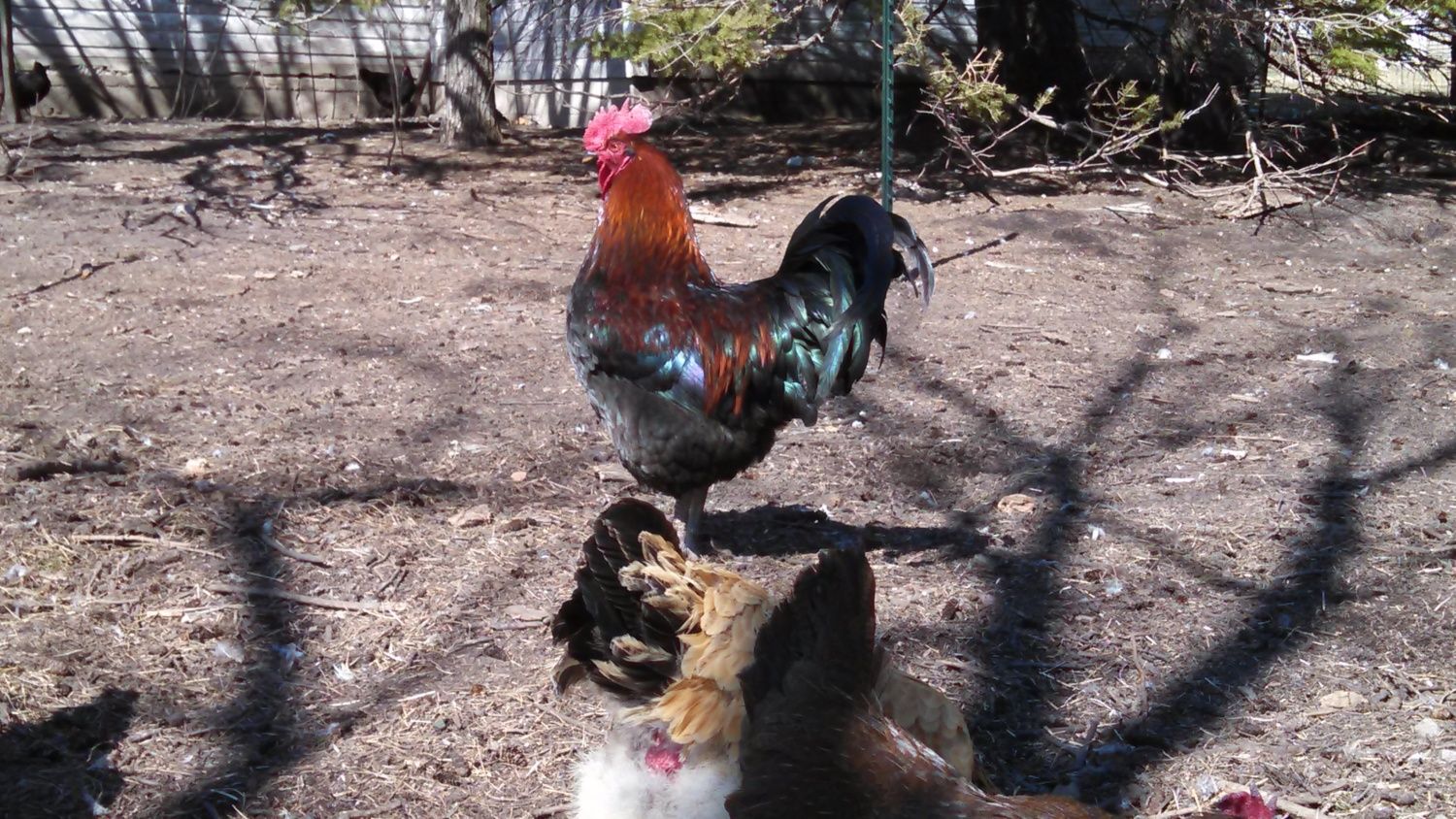 I am a little disappointed in this roo... He seems to be losing a little weight... Although he calls all the girls to food but wont eat it himself. The only time u will see him eat is right before bed or if u toss them so scratch.