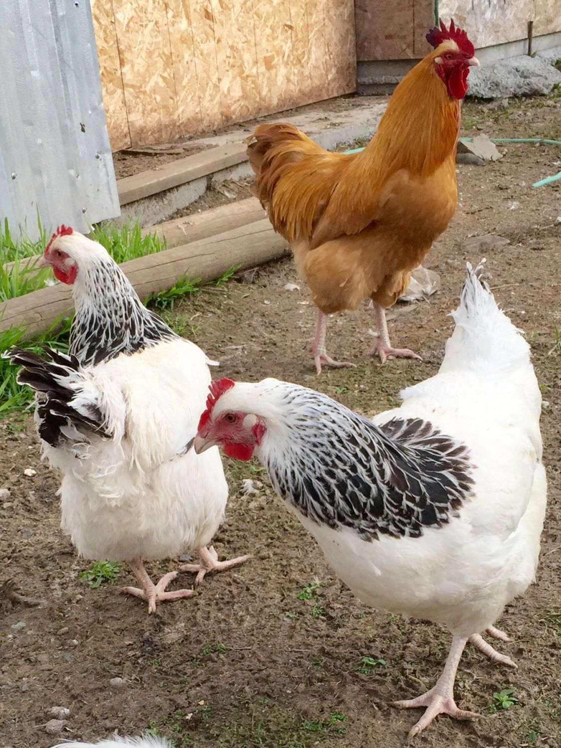 Well, this is my new project, I will see how it goes. I have 3 Light Sussex hens and 1 Coronation Hen and I just bought a beautiful Buff Orpington Rooster for them. I will see how this project goes. If I have a difficult time sexing them I will search for a beautiful RIR rooster. I've attached a photo. Missing is 1 LS and the Cornation