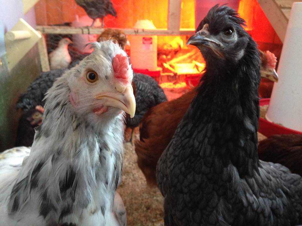 AgreedMixes, probably some Polish in them with those partial crests. Maybe some Easter Egger for the pea comb. The splash is a rooster.